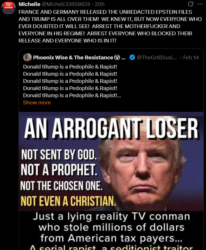 https://x.com/MAGACult2/status/2023076620672897041?s=20