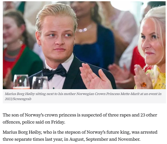 >>528565735You are talking about Crown-Princess Mette-Marit's son from a previous marriage. Do note however that Mette-Marit's first son is not in line to the throne as he was not adopted by Haakon, publically stated the reason is that Haakon didn't want to interfere with his biological father.>>528564796Important distinction is that the Norwegian Crown-Princess is married to Haakon, who is in line to the throne, where as Prince Carl Philip of Sweden (married to Sofia), is not in line to inherit the throne due to a change in royal inheritance law in Sweden in 1980.