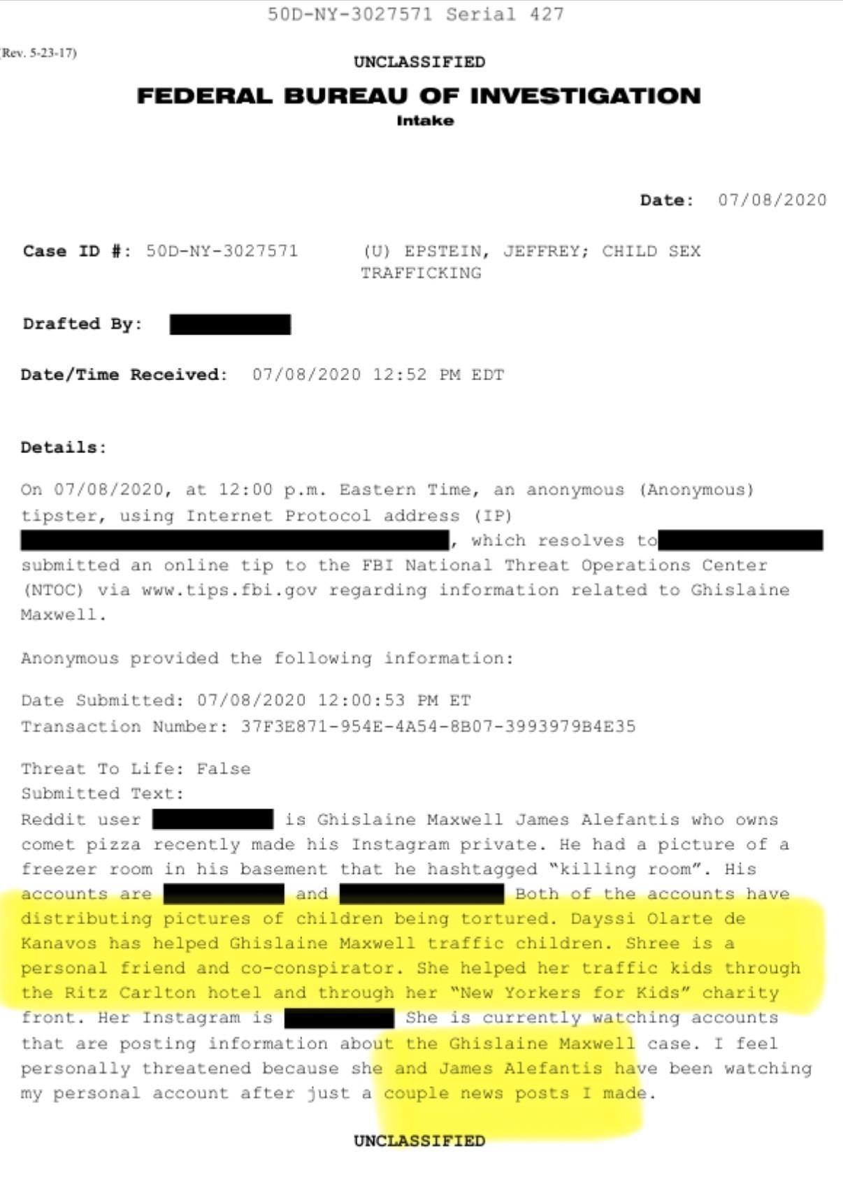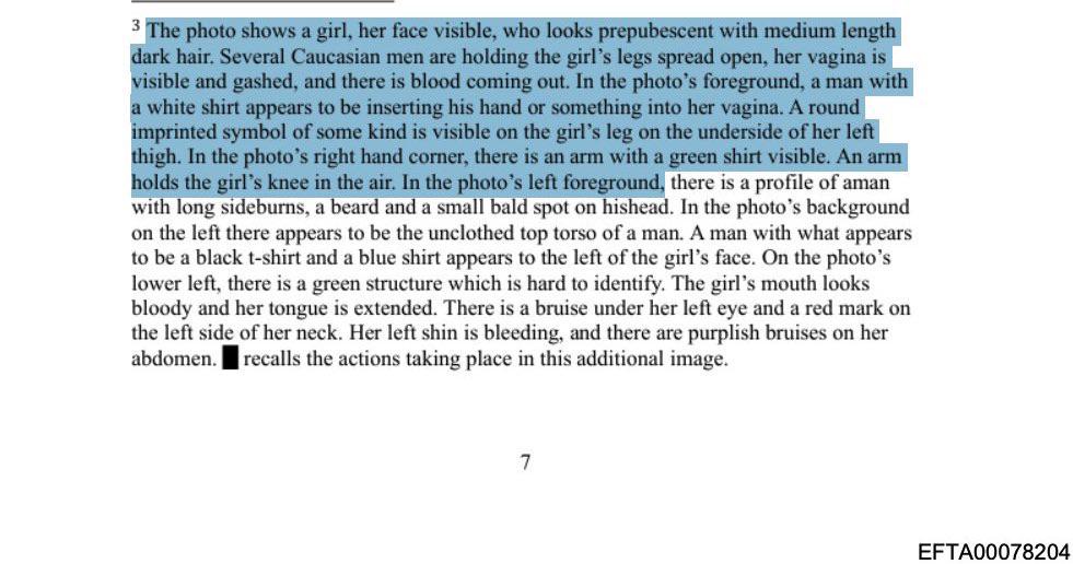 >>528566207>Unsubstantiated anonymous online tip in 2020 that claims "Alefantis's Instagram recently went private" when it went private in 2017.>>528566304>Girl was brought from Ukraine to New York when she was age [long enough redaction that she is a teenager] and left with "foster parents" in New York while the rest of her family went to Atlanta.>The abuse was done by a "Mike and Sheila" (Not their real names) in the US, Ukraine and Israel 20 years ago, who might have known Jeffrey and "Lane".>Here are some unrelated allegations from various sources about what scum Epstein was, based on hearsay.>Girl received threatening texts in Hebrew from phone numbers in the Ukraine>Please let her into the US for treatment!I really wish people would actually read the whole file and not just skim for words they're looking for.You know, hearsay about child abuse from Australian Television also condemned the people at Waco despite any real evidence, and nearly condemned Australian Cardinal George Pell until a thorough investigation revealed that the only opportunity he would have had to molest the boy making the allegations would have been one day, during a three minute period between the end of mass and shaking hands at the door as the parishoners walked out.The photo, for all you know, is of a girl who was the victim of CSAM production IN UKRAINE, since that's where the girl is from and that's where she's living now, and that's where the phone numbers that sent her the threatening texts (in Hebrew) came from.
