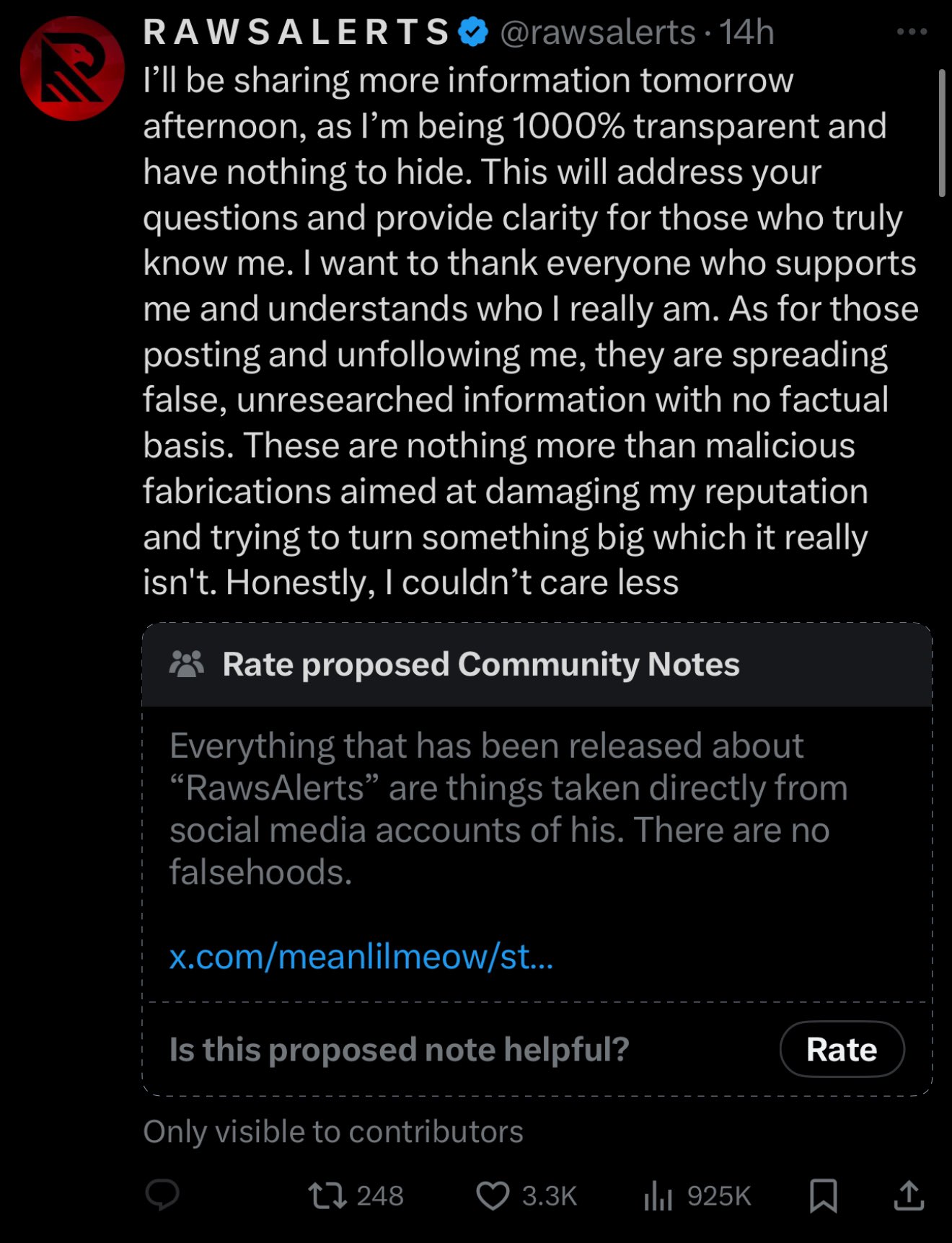 >>528575892>RAWSALERTSToday, I will remind them. It's time for real schizo hours. https://x.com/MeanLILMeoW/status/1889885844145840431