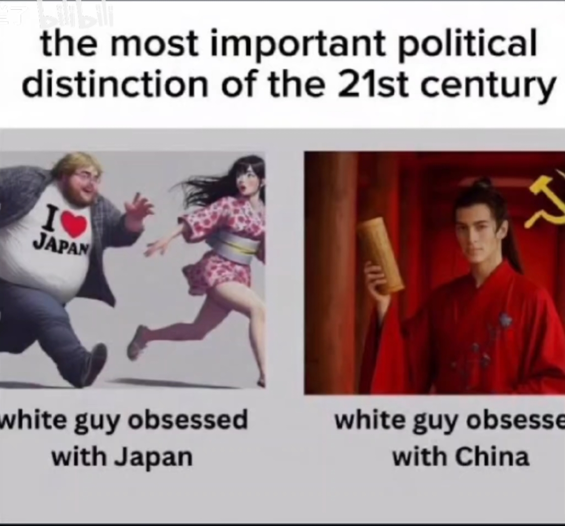 >>528582447This is truthnuke weebopiggu no ready for>Obsessed with Chyna =>Generally into martial arts>Knows how to fight>Learns to cook at home>Knows how to make hotpot>In good shape>Knows much history>Studies Qi Gong and Ni shin meditation>Career focused>Family orientedWhereis Japan obsessed be like:>Fat, single bitter blackpiller>Thirsty for pussy, can't get none so faps to train me>Can't fight>Can't recite Japanese history >Lives with parents, no job or career>Weebs and simps for cartoon girls like some brain damaged man child>Can't cook, instead thinks ramen noodles and anime porn make him "cultured">Seethes endlessly online about being called a troon, because he avatar fags the same way trannies do>Socially retarded>Japanese find him weird and cringe and wish he would stop embarrassing himself>More likely to be a power bottom that suicides with tranime posters all over wall>Is generally an overall coward with zero conviction irl