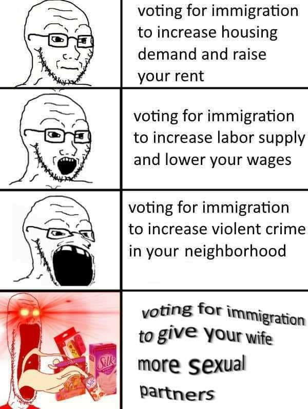 What do you mean cope? It aligns with their argument that immigrants are good for the economy and the nation.Immigration is good for the economy, but not the middle class. Thats the whole ideological split here other than the culture split.Leftists view the economy as a whole. Rightoids value the middle class economy above all else. The left has to look at the whole market because looking at the middle class only is discriminatory. We can afford more welfare if we fill the factories with Indians. The left is glad to sacrifice the middle class to prop up more poor people. The right is not.Thats the disagreement