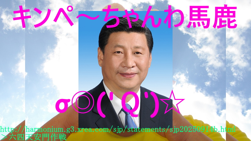 キンペ~ちゃんわ馬鹿σ◎('Q‘)http://harmonium.g3.xrea.com/sjp/statements/sjp20250914b.html>六四天安門作戦m9(゚∀゚)Идиoт!> нoмeнклaтýpaנומנקלטורה עמלקCeterum autem censeo, Nomenklaturam esse delendam.