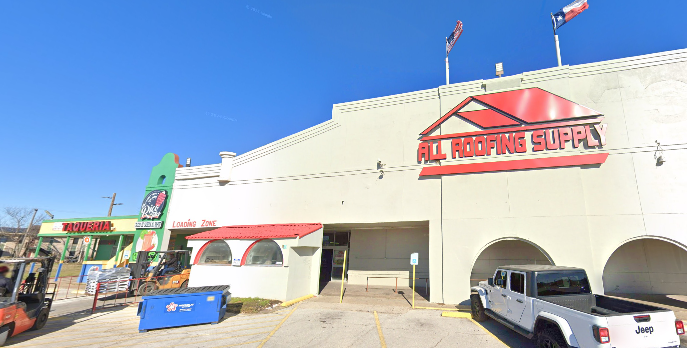 Behold, the most American picture to ever exist, you can get your roofing supplies and feed your illegal roofing compadres in a one stop location.
