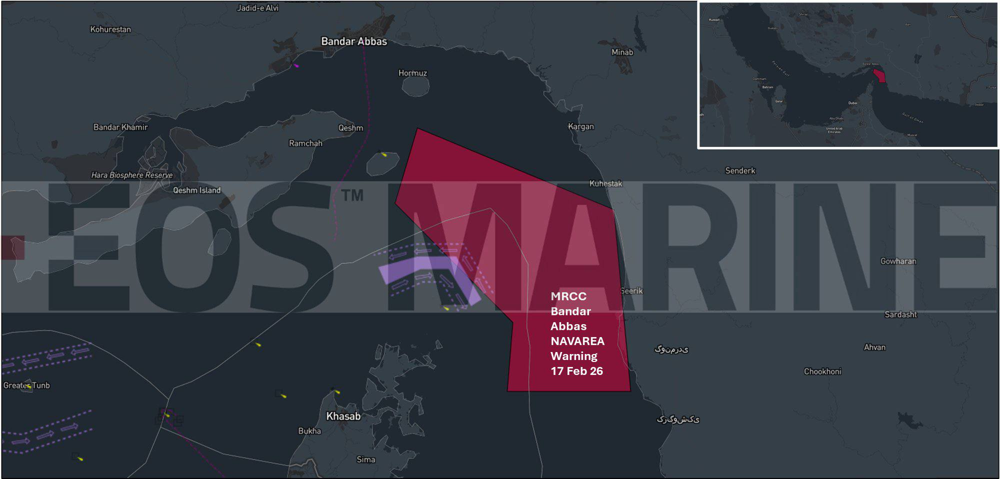 >> Part of the IRGC Navy exercises that are currently taking place, interfere with a section of the maritime shipping lanes>Foreign-flagged vessels are urged to use the southernmost lanes to navigate trough the Strait of Hormuz.