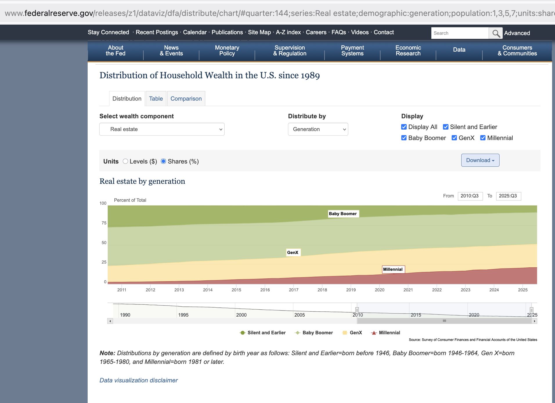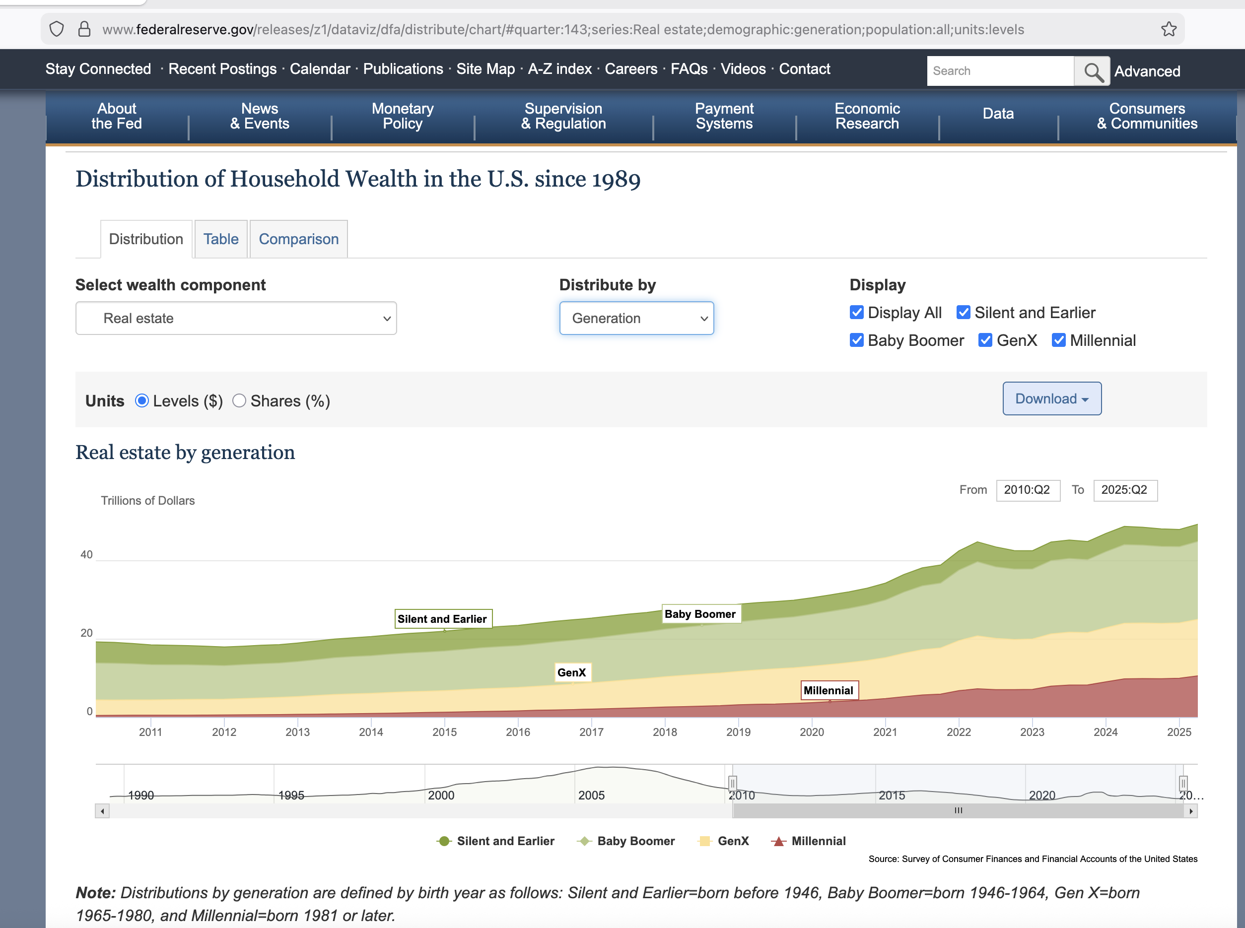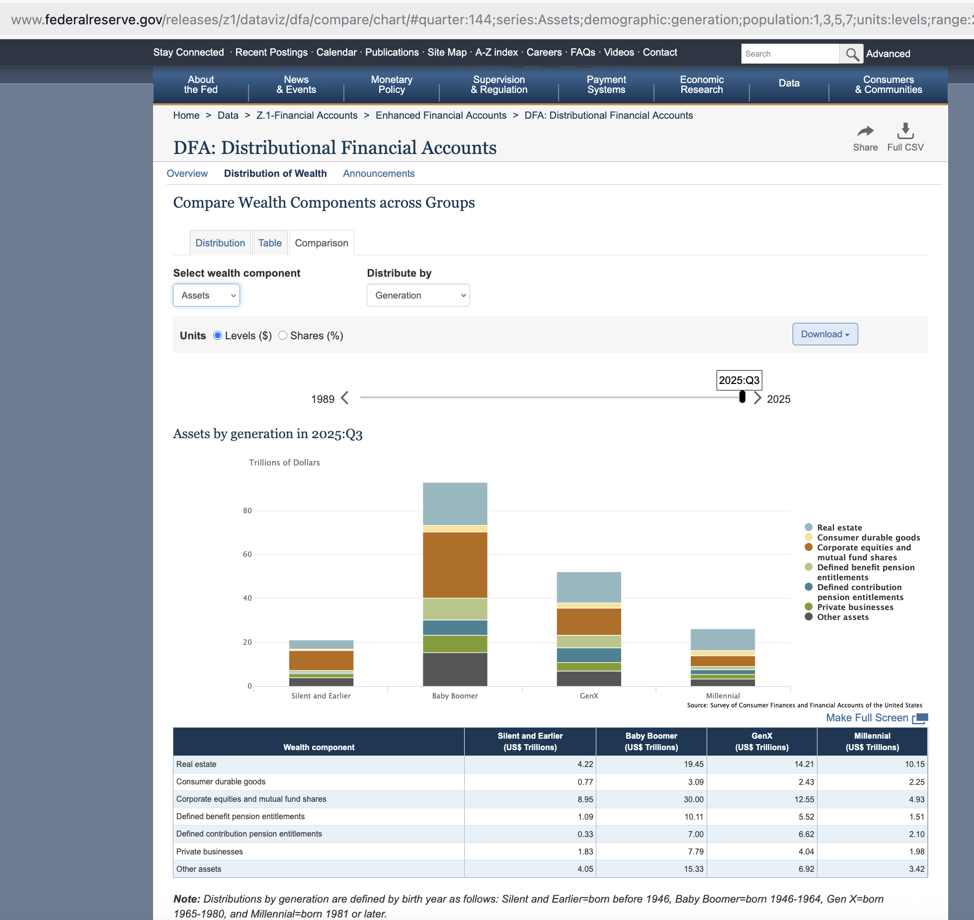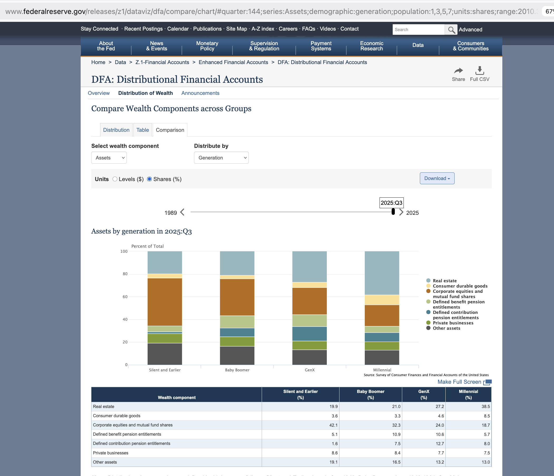 >>528613749That's just a convenient interpretation. Far more likely is that more of millennial wealth is in homes just because they have a paucity of other types of wealth (especially pensions), the real estate they hold isn't as good because they didn't get in as early as the boomers for obvious reasons, and less of them own houses at all - boomers are at 75%, millennials just recently crossed 50%. The fact is that artificially high home values would never affect boomers alone, they would affect all home ownership, including whoever owns one in younger generations. It would never be the case that boomers specifically would have outrageously high prices by virtue of being boomers while a millennial owning an equivalent home would not. A boomer may or may not judge their home price in an overinflated way but the Fed would never use their stated number just because they stated it.
