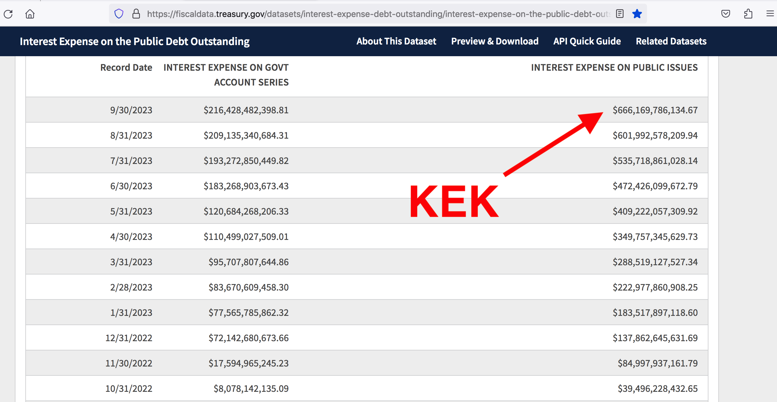 >>528620871>>when a generation sells the futures of their country and their offspring for unsustainable and lavish wealth and their offspring are too stupid to realize itWait until US taxpayers figure out that the payroll taxes collected for social security, medicaid and unemployment are then used to purchase specially-issued, non-marketable US treasuries (aka Government Account Series, aka GAS) and THE US TAXPAYER IS THEN CHARGED INTEREST ON THESE GAS TREASURIES BOUGHT WITH THEIR PAYROLL TAXES. This is called the Intragovernmental Debt and is included in the US Public Debt. The interest that we pay on Intragovernmental Debt is in the left hand column in pic related and the other interest paid to borrow the Federal Reserve’s currency in exchange for US Treasury debt (these are called Public Issues —-aka Debt Held by the Public aka Marketable debt) is in the right hand column of pic related and the creation of these Public Issues is detailed in the text in >>528620871Pic related is total interest paid on US treasuries for FY 2022 to borrow the Federal Reserve’s private currency in the form of bond debt (Debt Held by the Public + Intragovernmental Debt = US Public Debt)$718 BILLION in interest paid$718,000 MILLION in interest paid$718,000,000,000 in interest paid to issue their Federal Reserve Note out of thin air in the form of bond debt in FY 2022THIS IS ALL FUCKING BOOMER.BOOMERS ARE ALSO THE ONES ALLOWING THE FUCKING BROKE-ASS NYFED TO ROB US FUCKING BLIND TO THE TUNE OF $2B/WEEK