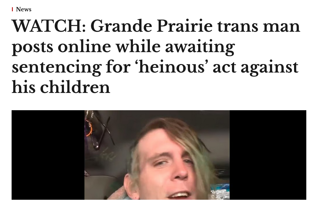 >>528610917>Oh you're trans? Well in that case do what ever you want all the time.https://www.westernstandard.news/news/watch-grande-prairie-trans-man-posts-online-while-awaiting-sentencing-for-heinous-act-against-his-children/71171