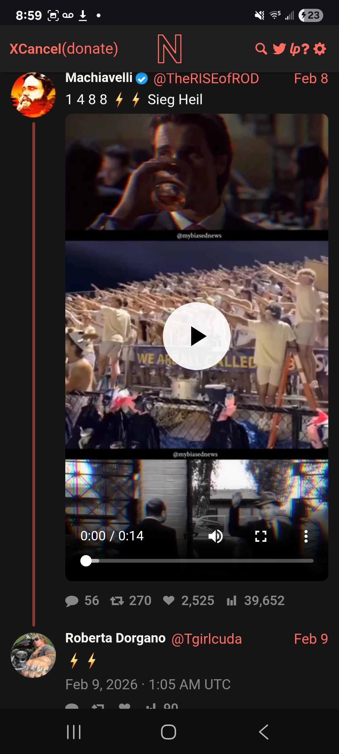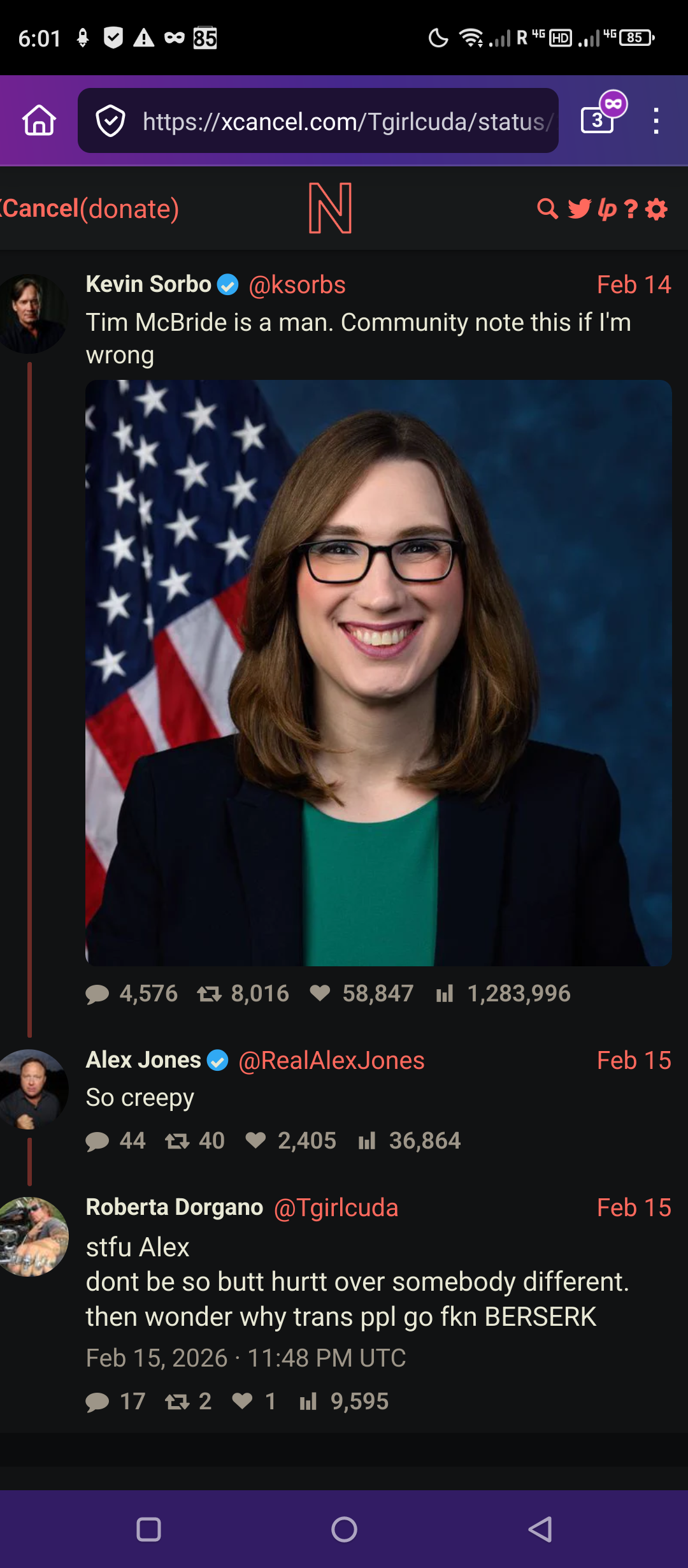 Killer's last tweethttps://x.com/Tgirlcuda/status/2023194217980498426