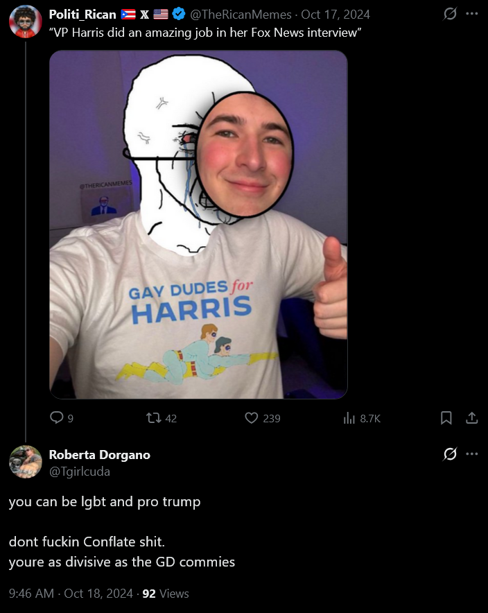 >>528636326>tranny posting all over xitter how much it loved spic fedtes and thought he was hotthis shit posting doesn't even matter. laughing at your mental illness and the destruction of your death cult is my God given right.