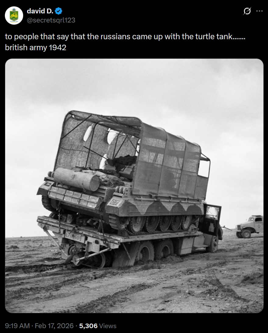 >to people that say that the russians came up with the turtle tank....... british army 1942another tech stolen LOLOLOL