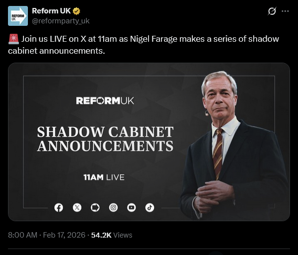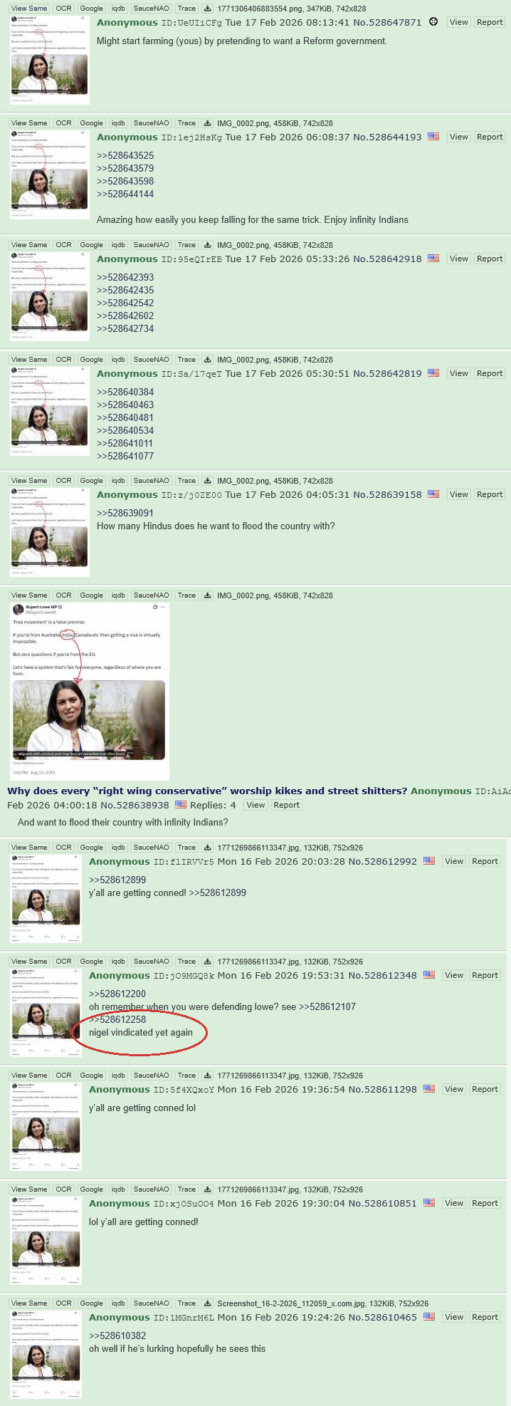 Filter forenflags, memeflags and obvious dissenters. They've been in overdrive all weekend which can only mean one thing, glowniggers are scared.>Councils face 'uphill struggle' to be ready for local electionshttps://www.bbc.co.uk/news/articles/c043z5rzwg7o>'This isn't Lord of the Flies': That was how the prosecution denounced the savagery of three teens who lured a man they claimed was a paedophile to a Kent beach before beating him to deathhttps://www.dailymail.co.uk/news/article-15565465/teens-lured-man-claimed-paedophile-Kent-beating-death.html>Rachel Reeves nightmare as unemployment rockets to highest level in five yearshttps://www.express.co.uk/news/uk/2171780/rachel-reeves-uk-unemployment-rate-rise>Jenrick to be made Reform’s shadow chancellorhttps://archive.ph/ejMP5>Met deploys drones and ebikes to help catch adolescent phone thieveshttps://www.theguardian.com/uk-news/2026/feb/17/met-police-drones-ebikes-phone-thieves-gangs-recruit-children-london>Jobcentre on Wheels to be rolled out across Britain – this is wherehttps://www.independent.co.uk/news/uk/home-news/jobcentre-on-wheels-pat-mcfadden-dwp-b2921559.html>East London borough will get 'independence' vote on leaving capital under Reform UK, Nigel Farage rally toldhttps://www.standard.co.uk/news/politics/london-independence-vote-havering-nigel-farage-andrew-rosindell-romford-b1271268.html>Mum calls for clearer side effects of contraceptive pill after daughter, 19, dies from blood clothttps://www.itv.com/news/granada/2026-02-16/mum-calls-for-awareness-of-contraceptive-pill-effects-after-daughters-death