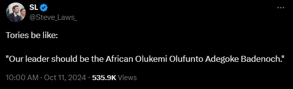 >Olukemi Olufunto Adegoke Badenoch >Leader of the Conservative PartyStill don't understand their game plan here