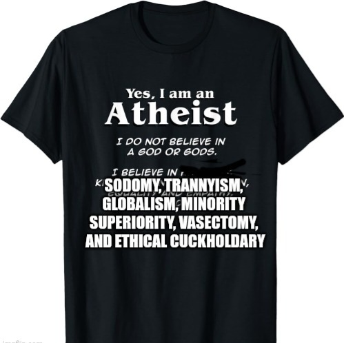 If the Jews thought OWS was bad I want to see what they think of the niggening when everyone in a camper van shows up.>>528698823Oh but for the usual suspects>lolbert - unknown maybe nominally Christian, possibly Christian morality in place of big government, lolberts have quite a spread from anarcho-tyranny to 1776>neo-nazi - historically protestant>atheists - large presents on internet and especially 4chan from mid-2000s to a few years ago or fewer, you're welcomeA lot of intelligent anons used to be much more agnostic. Atheism survived on its literature believe it or not and "a demon-haunted world" has a lot of truth to it even if it is the academic's masquerade.