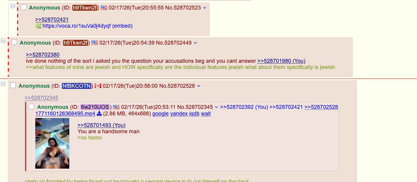 >>528702748hes not actually responding to the content of any of my posts hes just dodging and coping this is functionally spam>>528702449>ive done nothing of the sort i asked you the question your accusations beg and you cant answer >>528701980(You)>>>what features of mine are jewish and HOW specifically are the individual features jewish what about them specifically is jewish