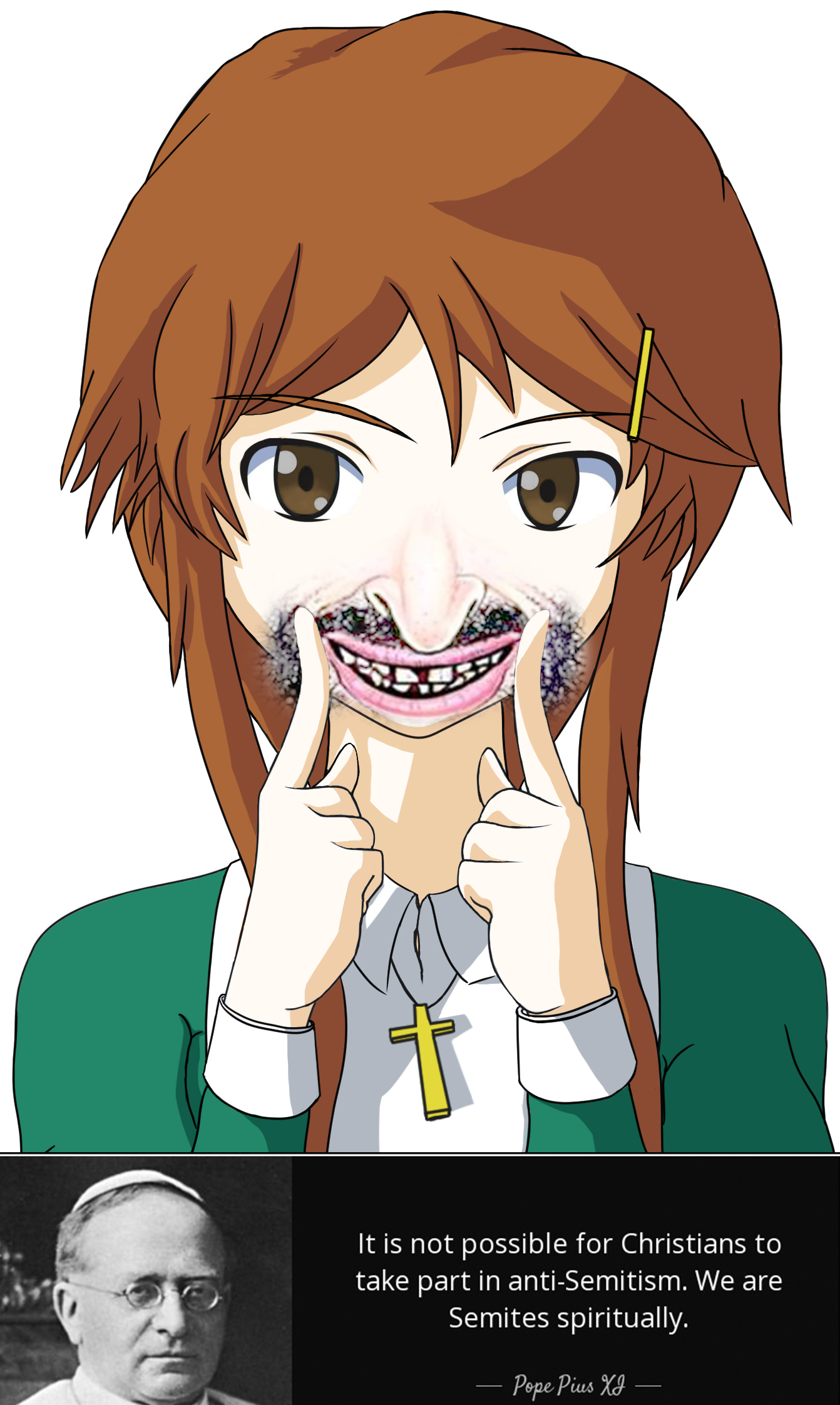 >>528698608>Christ-chanI don't even know if you're asking about the notorious lolcow or some shitty Christnigger anime girl spinoff. In either case, you're retarded. Imagine pretending a racist meme imageboard full of gore, porn, and sick jokes was Christian. LOL