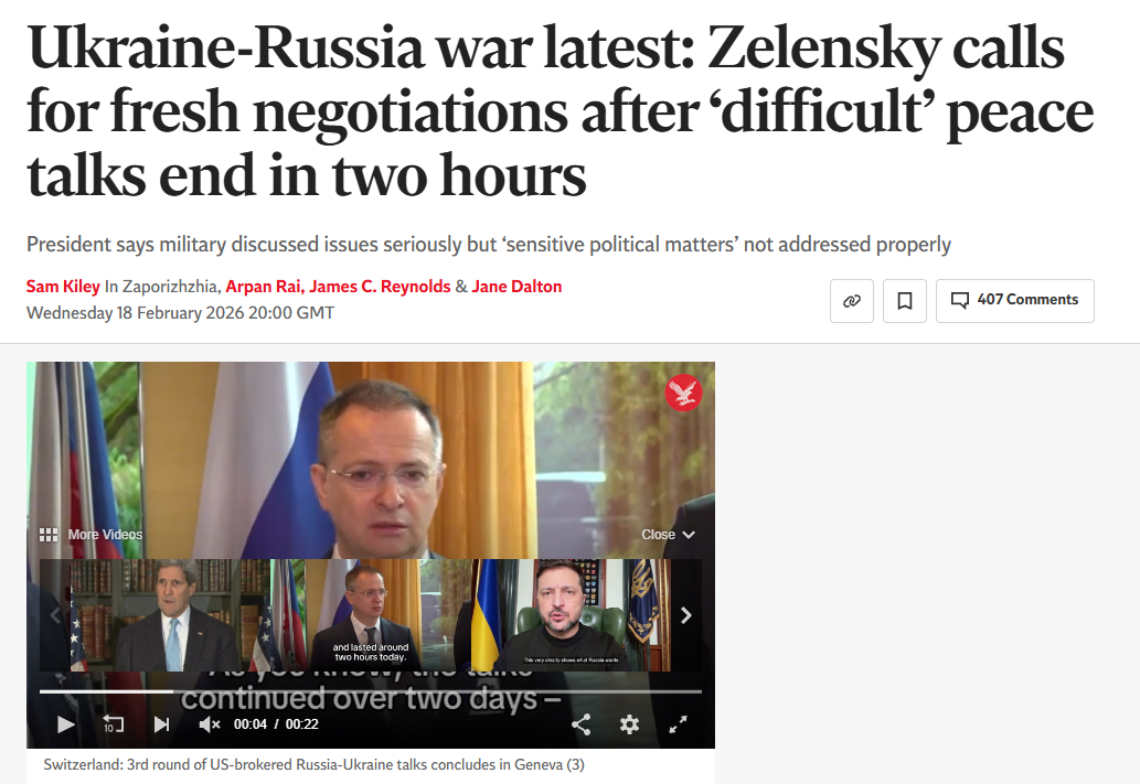 Zelensky complains that Trump has pressured him "inappropriately" to accept Russia's deal, and that it is the 'ukrainian people' that won't allow him to cede land in exchange for peace. He then accused Russia of dragging out peace talks and left the peace negotiations after two hours, questioning if Trump, Vance and Rubio truly care about Ukraine. He then did a full 180º and demanded that a 'new summit' be organized, which somehow will be different (?) for a reason I'm sure makes sense to him.https://www.independent.co.uk/news/world/europe/ukraine-russia-war-live-trump-zelensky-putin-peace-talks-b2922462.htmlWhat is Zelensky even doing? The 96 billion dollars from Europe are running out, Belgium betrayed them and scared the EU out of stealing Russia's money and giving to him, it is -13º in Kyiv right now and the entire country is blacked out and being pounded by russian missiles and drones. The frontlines are frozen, the russians are just watching the situation across the border and no longer making any big attacks.The entire situation looks hopeless, but he seems adamant to fight to the last dollar that he is able to steal from the West.