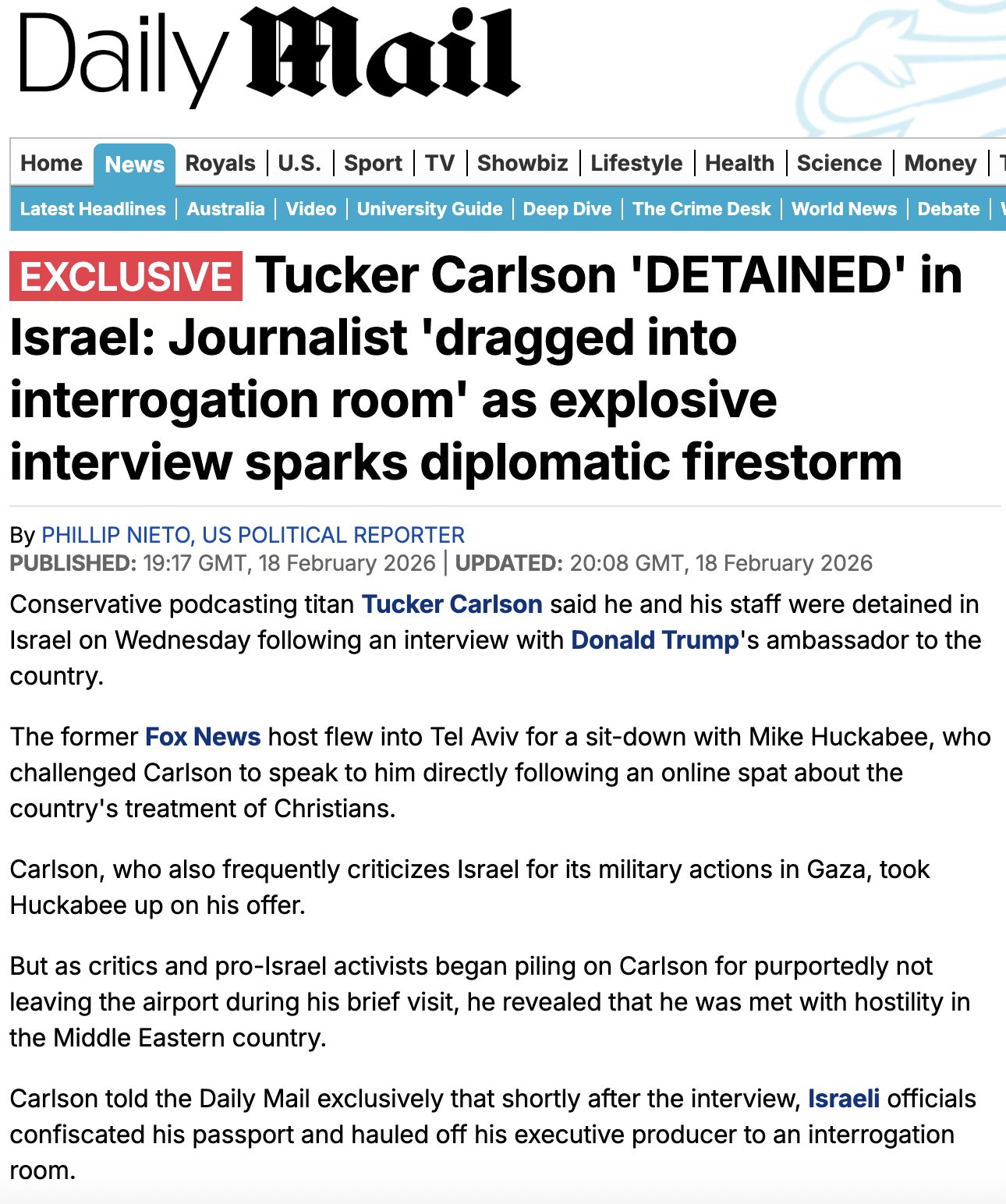 Trump, the entire GOP and Petey G. have been eerily quiet about Israel kidnapping such a high profile American for conducting an interview with a US representative in an airport.