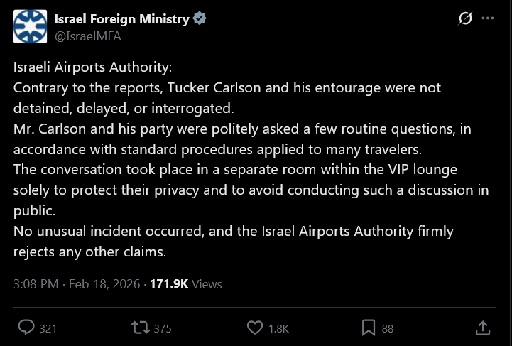 >>528767481>he wasn't detained or interrogated goy>we just took his passport and put him in a VIP room to ask a few questions>>528767561>I stand with Israel!HOLY BASED>>528767607>it wasn't TuckerWhy do you lie?