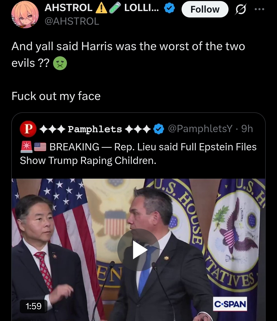 >Still voting blue(no matter who)That's just what epstein did his entire life, too!