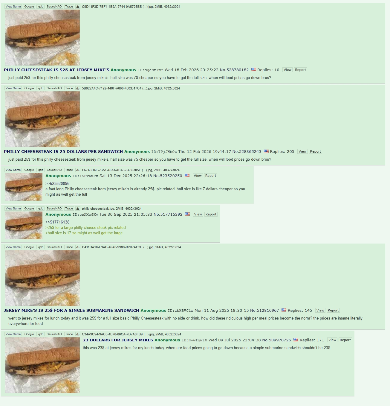 just paid 25$ for this philly cheesesteak from jersey mike’s. half size was 7$ cheaper so you have to get the full size. when will food prices go down bros?