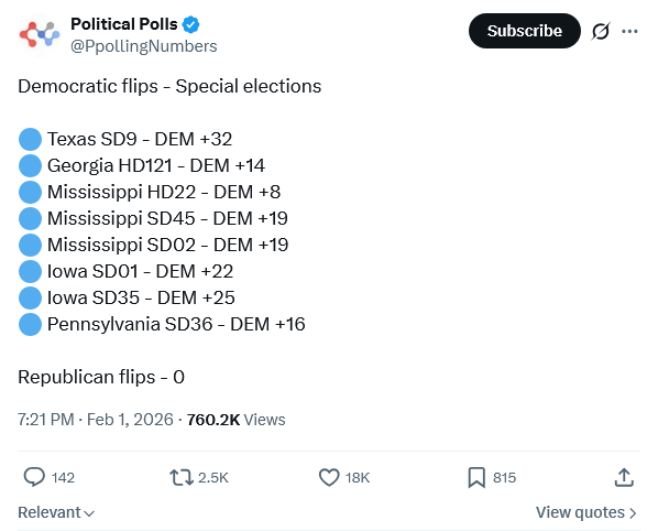 >>528803503>>528803508You lost in a landslide in 2025>muh off seasonIt wasn't off season if you lived in those states, it was all over the news and streets>muh blue statesOne had a Republican win last time and the other was within 2 points. They were competitive and winnable, yet Dems won in landslides2026 will look the same You fucking lost