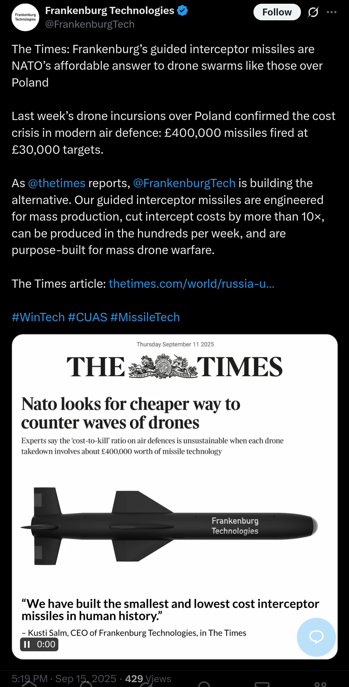 >>528912071>Laser guided lightweight air-to-surface, air-to-air, surface-to-air, and surface-to-surface missile with 3kg warhead and 6-8km rangeThe American AGM-114 Hellfire, from 1984, is a Semi-active laser homing, air-to-surface, air-to-air, surface-to-air, and surface-to-surface missile with 9 kg warhead and 7 - 11 km range.This thing seems to be the same, but worse.>A wunderwaffen to defeat Geran and supposed to be 67-120k USD each.For 120k you can get a hellfire, even the price is similar.