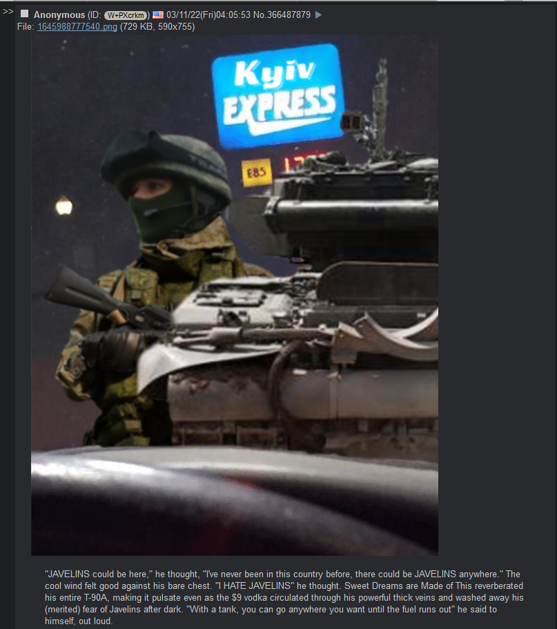>>528911445Russian soldiers on the receiving end might disagree with your cheerleading...while Russia's weapon production gets near it's zenith quantity wise Europe still has lot of room to grow. Russia is running out of time and difficult decisions will have to be made in the military strategy sphere.>inb4 cheerleader with the same old and predictable dumb arguments because his emotions got offended at my reasoning that Russia is not this almighty power with almighty powers