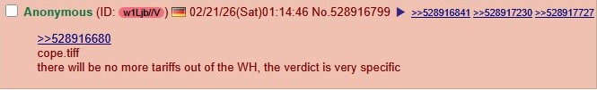 >>528916680cope.tiffthere will be no more tariffs out of the WH, the verdict is very specific