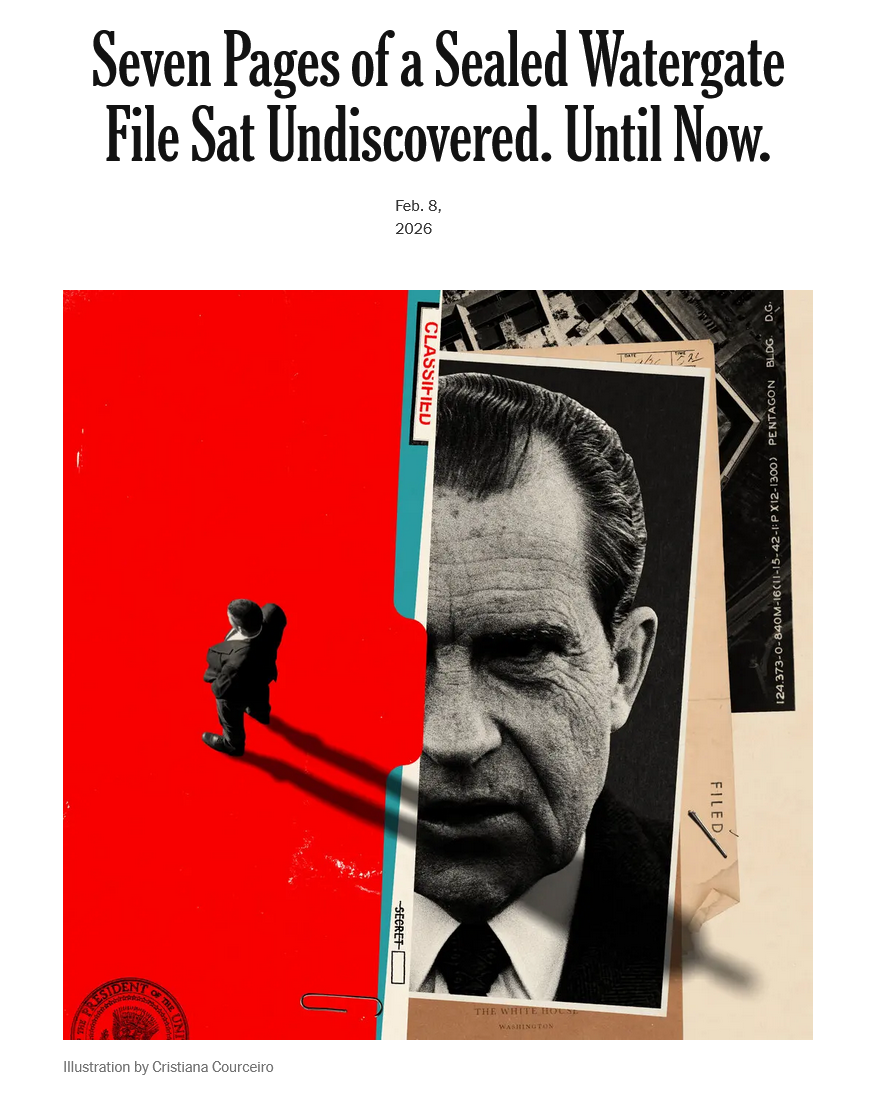 >the fucking New York Times of all papers published a massive TL;DR article belatedly vindicating Richard Nixon on Watergate>they buried their own story on a Sunday two weeks ago and so nobody talked about itFuckers.https://www.nytimes.com/2026/02/08/opinion/trump-nixon-watergate-radford.htmlhttps://archive.is/P5nPP