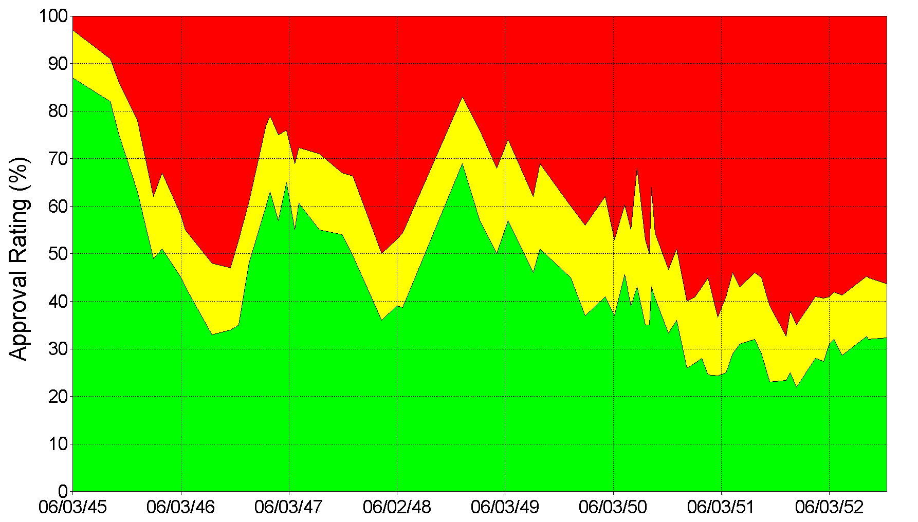 >>528920793As per wikipedia Truman had the lowest approval rating while in office of all American president in the era of polling, 22%. Even lower than Nixon at the time of his resignation or Bush jr. after the war in Iraq had ended up in a costly fiasco. What did Truman do (or was claimed to have done) to deserve it?
