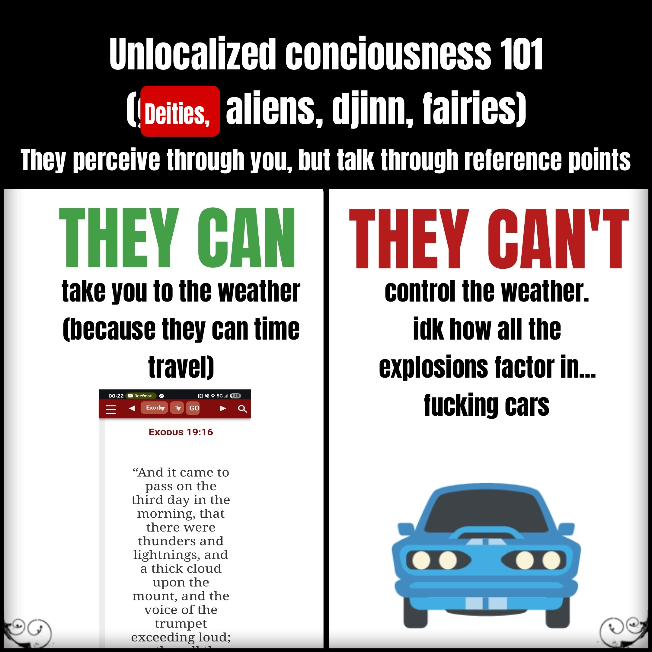 >>528921408Eh. Most people get confused. Truth is there is no all powerful being and a lot of beings claiming to be "the one true god" are just larping.
