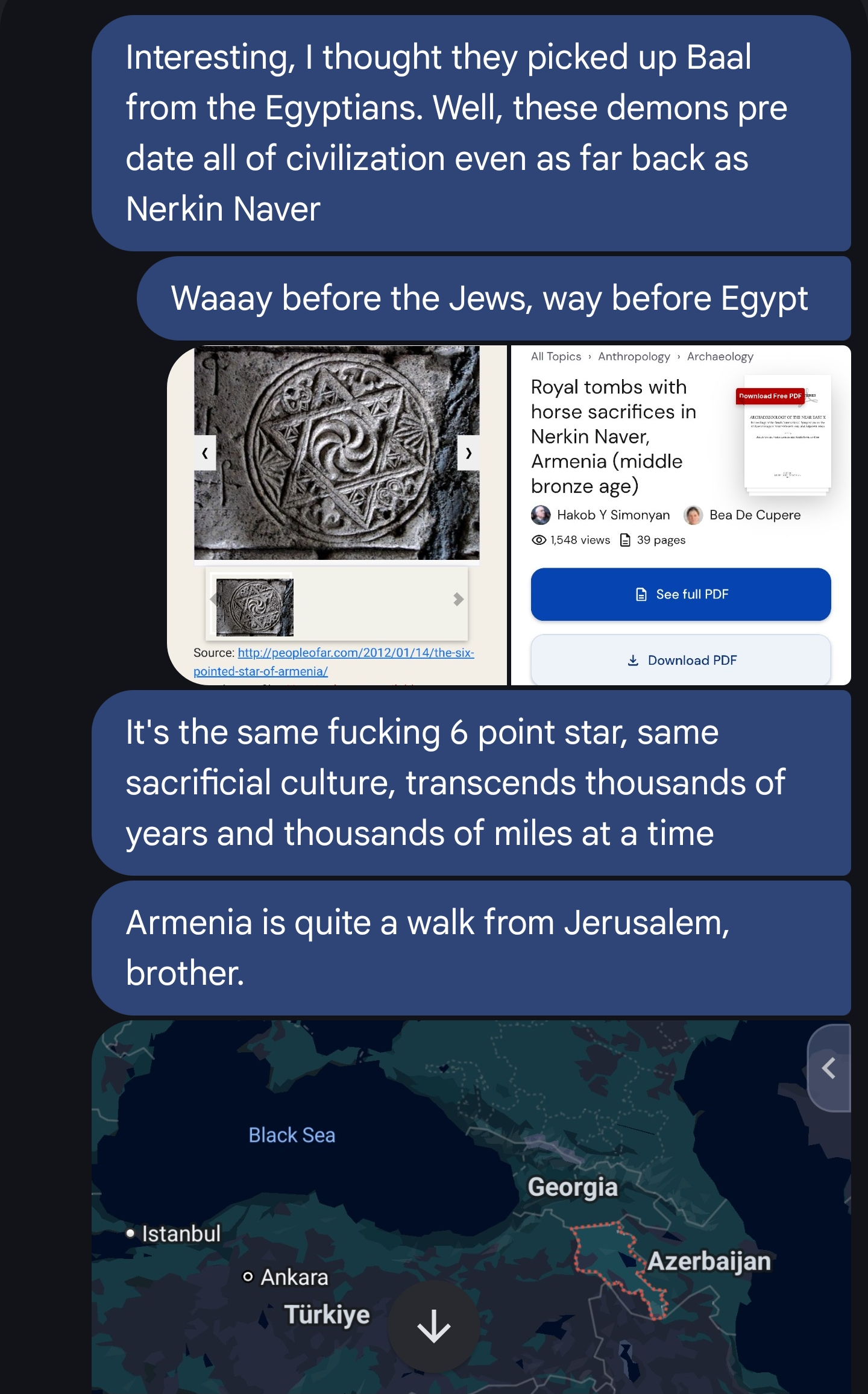 >>528920775FUCK why did I stop lurking. Just when I thought I was out... They keep pulling me back in. Elohim and Yaweh are the Hebrew names for God in the old testament. Elohim is the name for God in the first books of Moses, the first books of the Old testament that is. Around Exodus a new name for God appears - Yaweh. Yaweh wants the people to build him a golden altar, sprinkle blood upon it, and make burnt offerings in Exodus. Now many argue the Hebrew scribes and those who compiled the Septuagint were merely confused, but coincidentally around Exodus the LORD appears. LORD which in some translations (I think Phoenician) translates to Baal, the polytheistic deity from Egypt. The demon that plagues the Israelites from Exodus to Numbers where the demon Bael (Baal) is first named explicitly. Same demons and six pointed star thats been around way before the Cannanites, Jews or Egyptians. Same star from Nerkin Naver ritual sacrifice site in Armenia from thousands of years prior, same star from the vedas (Shatkona), same fucking demons of all time. I'll leave you with pic related that's where I'm at in the discussion with my bro. He's a chaplain, I'm a bit of a demonologist myself... A freemason even. tldr; FPBP