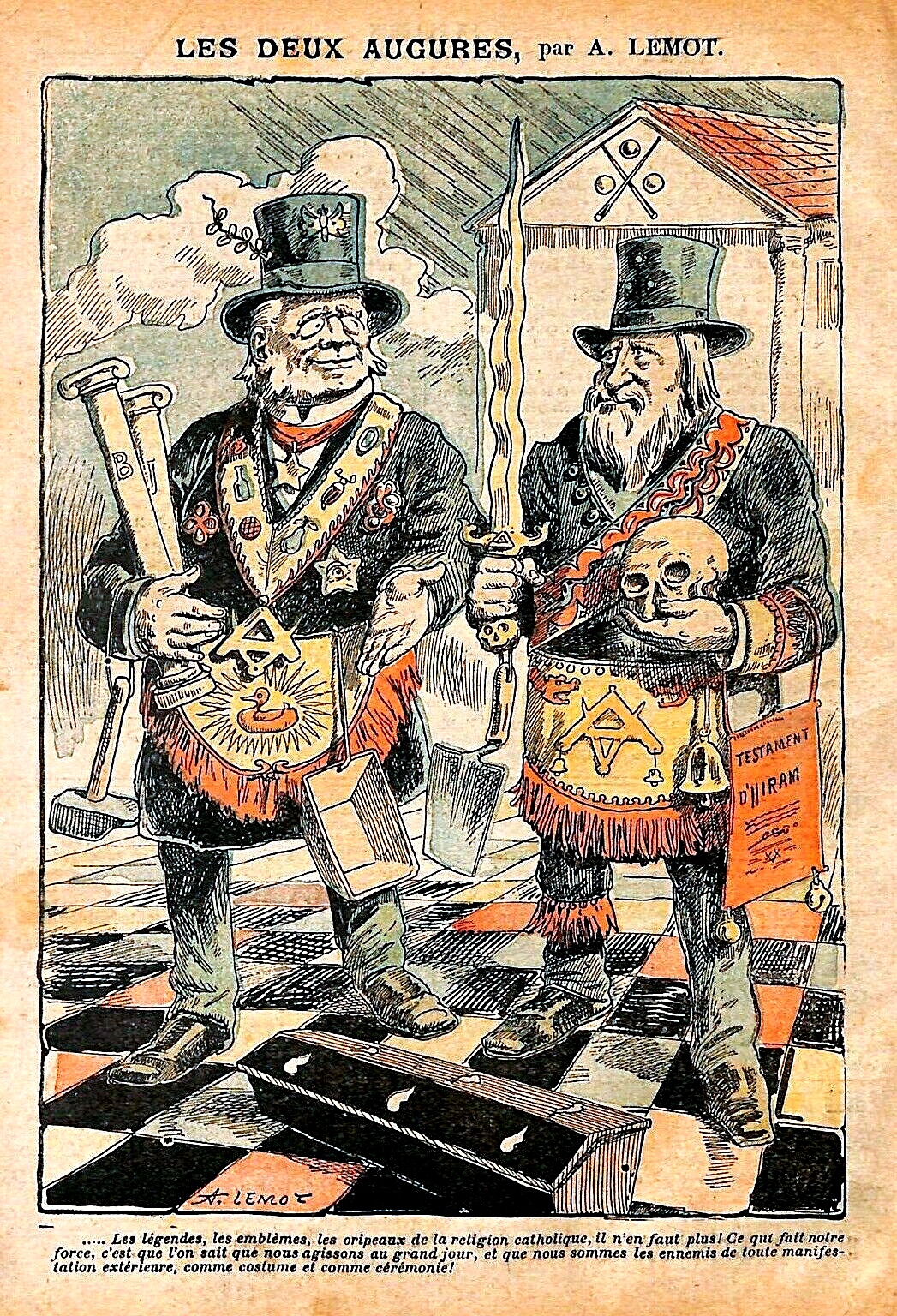 >>528924228You are a mindless spammer, and you always run the hell away when challenged. >The Two Augurs - Freemasons against the Catholic faith by Achille Lemot 1904Translation: “…The legends, the emblems, the symbols of the Catholic religion, are no longer needed! What gives us our power is that we know we can manifest publicly, yet we are the enemies of any outside manifestation, whether dress or ceremony [public displays and signs of the Catholic faith].Commentary:Augurs were the priests/priestesses of pagan Rome, they’d interpret omens (e.g. bird signs (their noises, flight direction etc.), weather etc.) as the will of the pagan gods/goddesses. Augurs were consulted in any major undertaking in Roman society – including matters of war, commerce etc. It was used in a fraudulent way to push in certain [desired] directions.