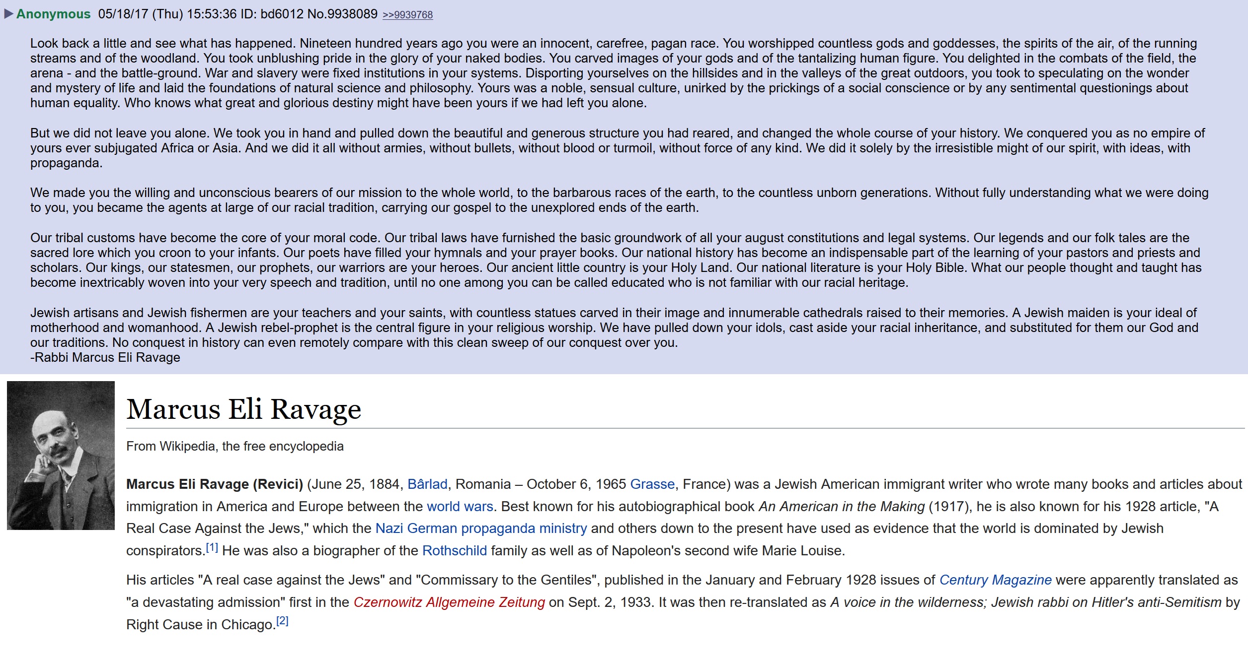 >>528944768They can't answer anything.>what is a man>how many genders are there>what does racism meanThey're not even consistent with their anti-semitism