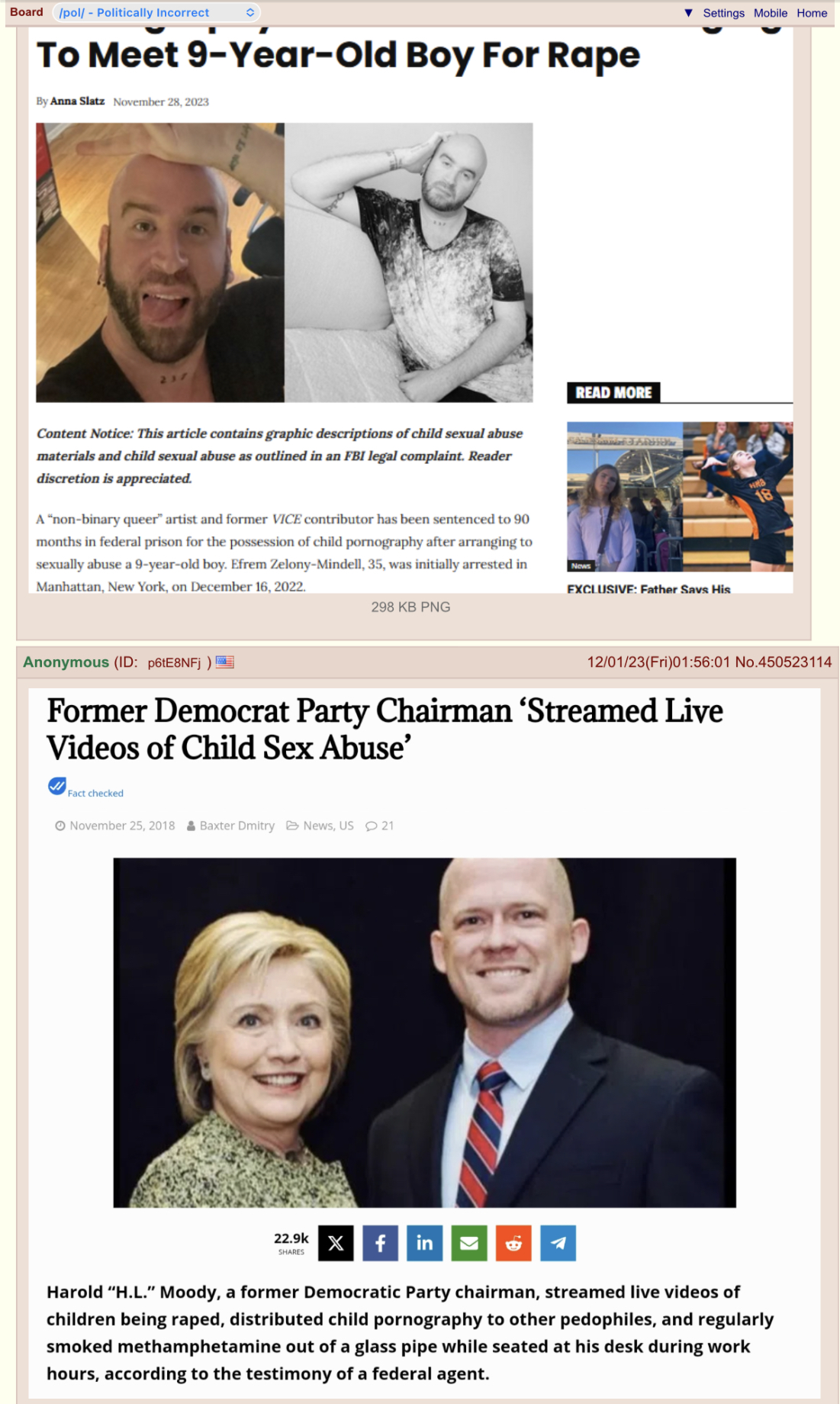 >>528966764https://katv.com/news/local/former-pulaski-county-democratic-party-chairman-harold-hl-moody-jr-sentenced-to-years-federal-bureau-prisons-for-child-pornography-porn-distribution-youth-services-united-states-district-judge-kristine-baker-attorney-cody-hiland-bryant-homeland-security>According to the 2018 complaint affidavit, Moody was present in a chatroom twice on Aug. 29 when child pornography was being displayed. Authorities said Moody's face was clearly visible on his webcam and the undercover agent also noticed what appeared to be an office setting in the background.
