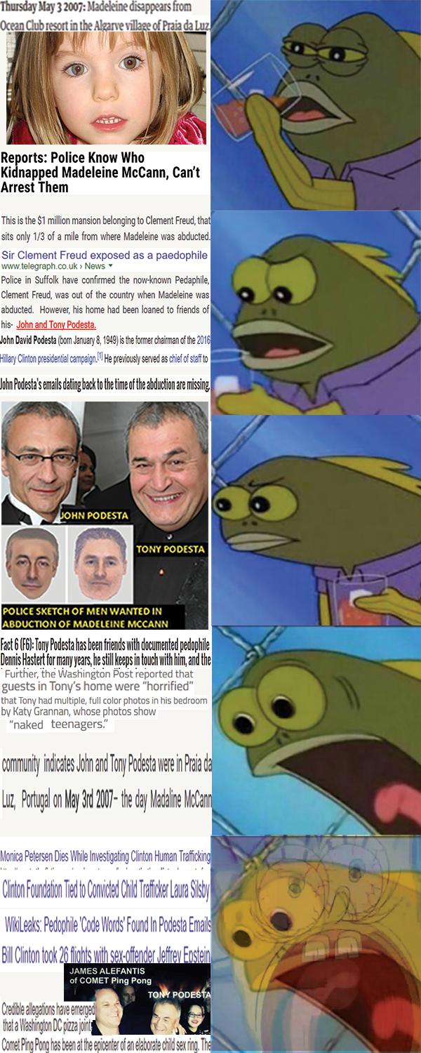 …they were just exposed to have been HARVESTING YOUR CHILDREN FOR MONEY AND POWER AT INDUSTRIAL SCALE. We can all agree such a crime is worthy of the harshest punishments.A nice time for anon to pull out the ability to investigate and meme using weaponized autism :-)Who knows, on the other side of this, old oldfags may be canonized, or given seats at a round table. I’m fighting to the death if necessary.