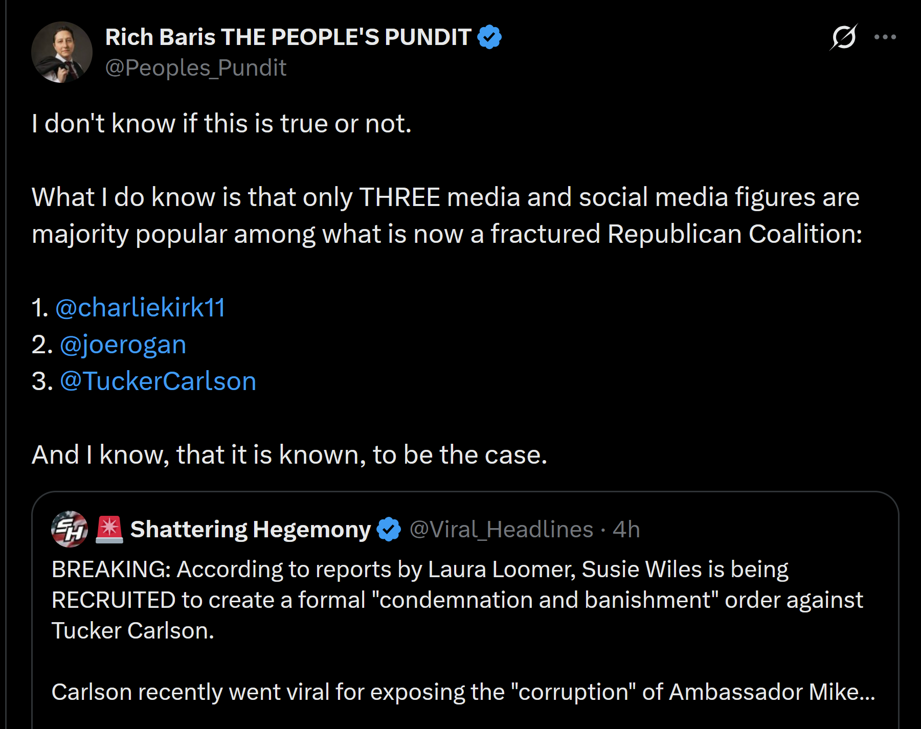 >>528968356lmao even, how bout these bananas?lost that "Fuck Tucker Qatarelson" pretty quick