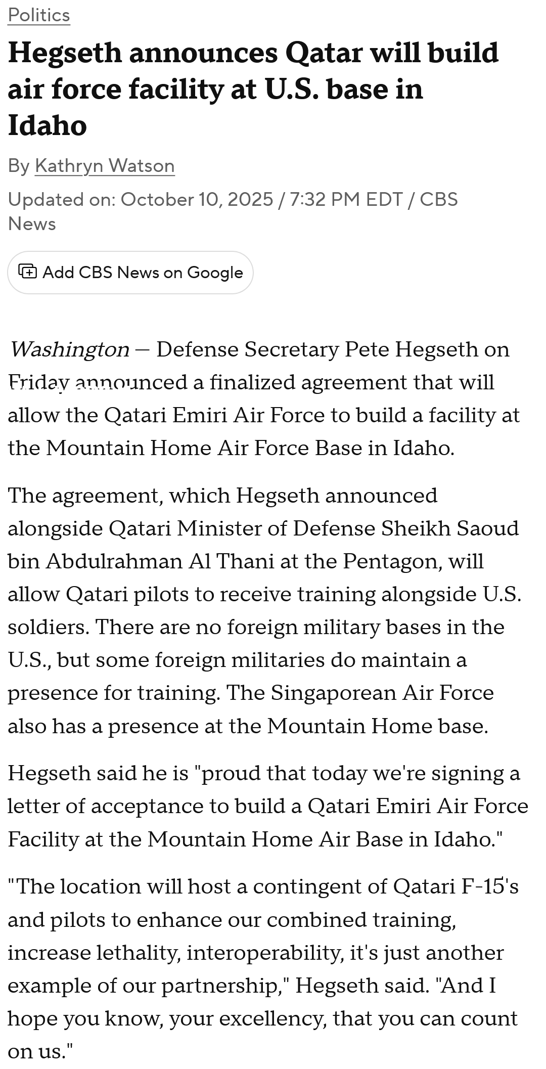 Why should I have anything against Qatar? They're an ally, and I don't see any of them moving into my neighborhood.