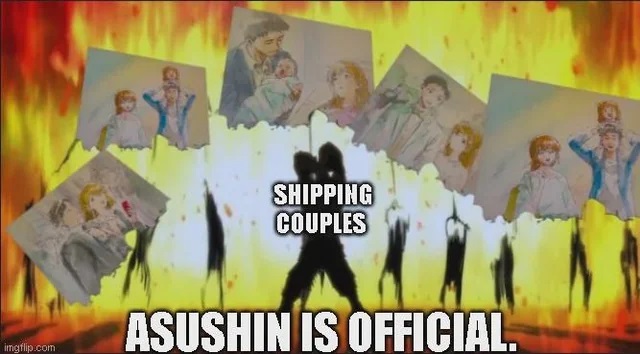 >>528980385>>528980437>>528980463>>528980506>>528980573>>528980632Apparently there was a 30th anniversary short that featured Asushin fanservice, including a date, wedding, and childbirth.