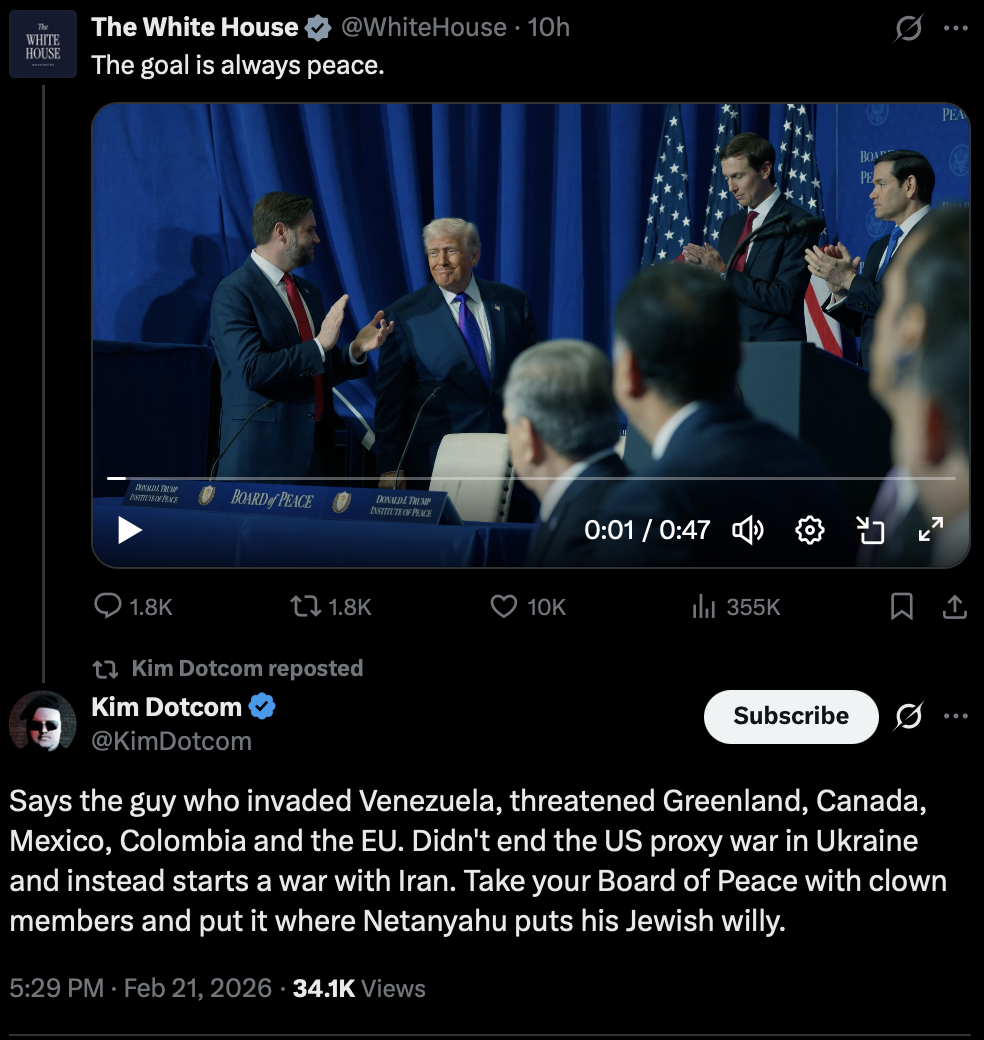 PRESIDENT DONALD J TRUMP @POTUS45https://www.donaldjtrump.com/https://www.thetrumparchive.com/https://x.com/realDonaldTrumphttps://truthsocial.com/@realDonaldTrumphttps://rumble.com/c/DonaldTrumphttps://www.tiktok.com/@realdonaldtrump>President Trump Officehttps://www.whitehouse.gov/https://www.youtube.com/user/whitehousehttps://www.flickr.com/photos/whitehouse/>Liz Harrington (Trump Spox) https://twitter.com/realLizUSA>Donald J Trump Presidential Libraryhttps://www.trumplibrary.gov/@realDonaldTrump @TeamTrump @TrumpWarRoom>b-but Trump hasnt done anything!ARCHIVED LINKS https://pastebin.com/eAhgNyeX NEW APPEARANCES>Pres Trump Announces New Tariffs After SCOTUS Ruling, Washington, DC 2/20/2026https://youtu.be/Hr4ql_ejTns>Pres Trump Georgia Rally, Rome, Georgia 2/19/2026https://www.youtube.com/watch?v=dSvsEvBq84o>Pres Trump Participates in the Board of Peace Event, Washington, DC 2/19/2026https://www.youtube.com/watch?v=vaPfxaSIc0w>Pres Trump Delivers Remarks to Fort Bragg Military Families, Fayetteville, North Carolina 2/13/2026https://www.youtube.com/watch?v=vVorrMd6lz0>Pres Trump Announces Massive Deregulations, Washington, DC 2/12/2026https://www.youtube.com/watch?v=JnkR8MbPKaE>Pres Trump Participates in the Champion of Coal Event, Washington, DC 2/11/2026https://www.youtube.com/watch?v=jBfm-1j30eE>Pres Trump Makes an Announcement on TrumpRX, Washington, DC 2/5/2026https://www.youtube.com/watch?v=LYrCH0vwxSI>Pres Trump Announces Strategic Critical Mineral Reserve, Washington, DC 2/2/2026https://www.youtube.com/watch?v=Y_vKqEbZw9s>Pres Trump Signs Executive Orders, Washington, DC 1/30/2026https://www.youtube.com/watch?v=E9y3yfTAUaE>TrumpVideo: WE WILL WIN 6/19/23https://rumble.com/v2v6m2a>MAKE AMERICA GREAT AGAIN, AGAIN! 10/28/21https://rumble.com/voe8gm>God Bless the USA (Donald J Trump) 10/20/16https://youtu.be/O_PC_fy0fk0 OP pastebin: http://pastebin.com/X4KiALfhprev >>528972984
