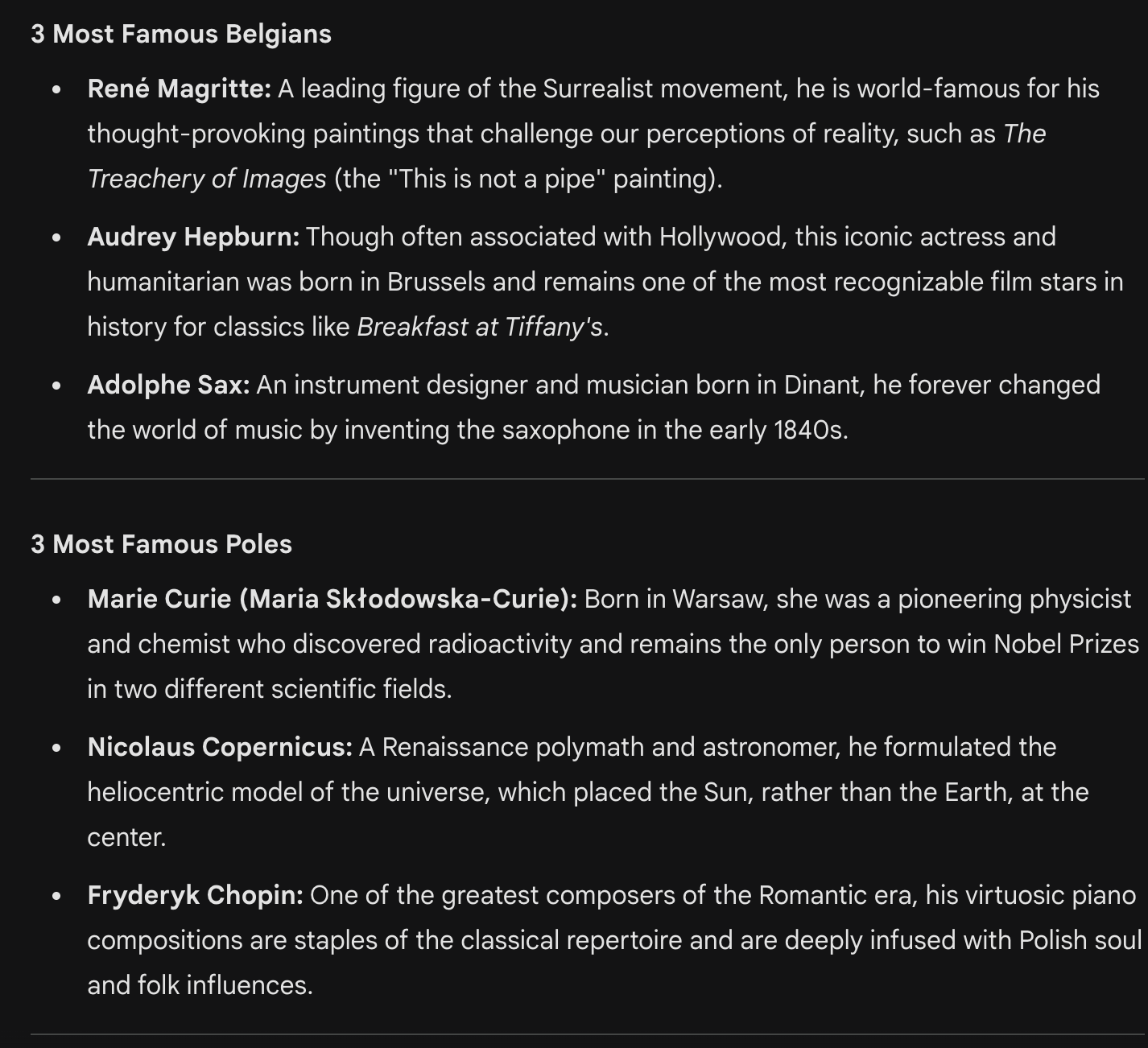 >>529000976>name 3 famous Polesand 3 famous Belgians are... literally nobodiesi guess that's what you get when your country is younger than most breweries in Europe