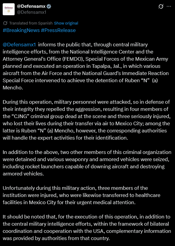 >>529011241>>529011166>>529011169I didn't really understand what happened at first. We just killed the leader of the Jalisco New Generation Cartel, which is now one of the bigger cartels in Mexico. This is actually a big deal and a legitimate happening. I could see Trump and Hegseth using this as a way to start hitting cartel targets on land.