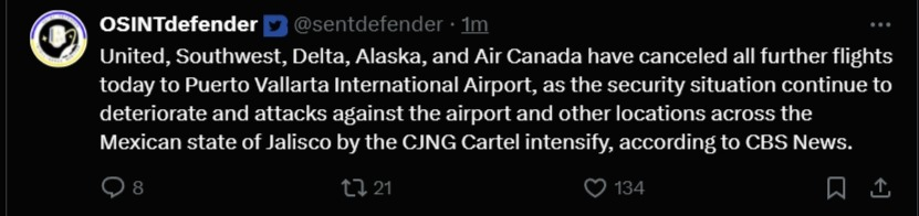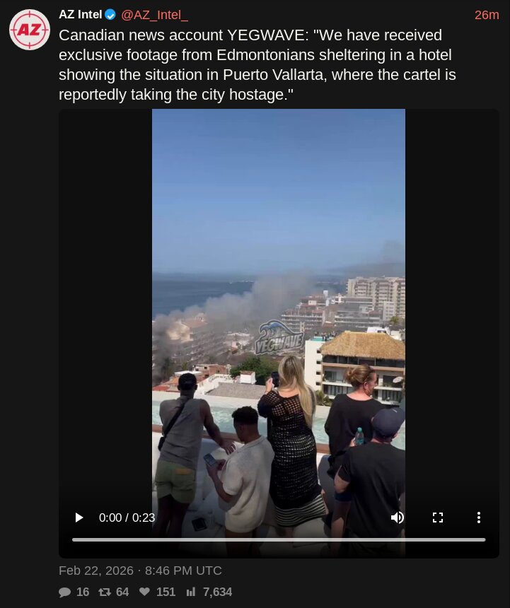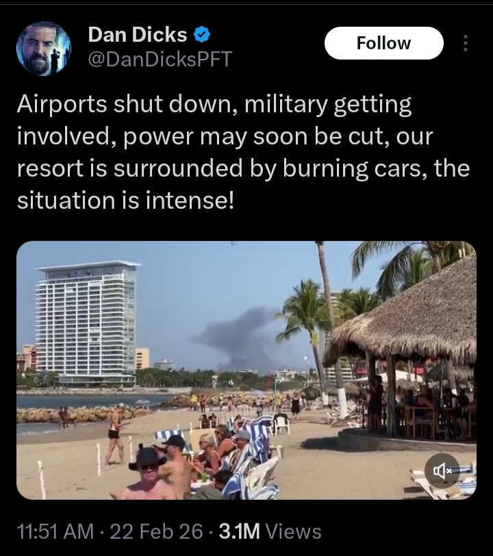 lmao elbows up Canadians boycotted vacationing in the US and are now stuck in the middle of a cartel warhttps://x.com/i/status/2025629594242416908
