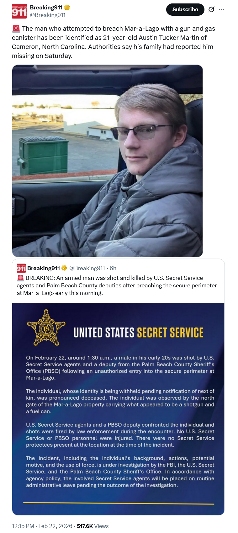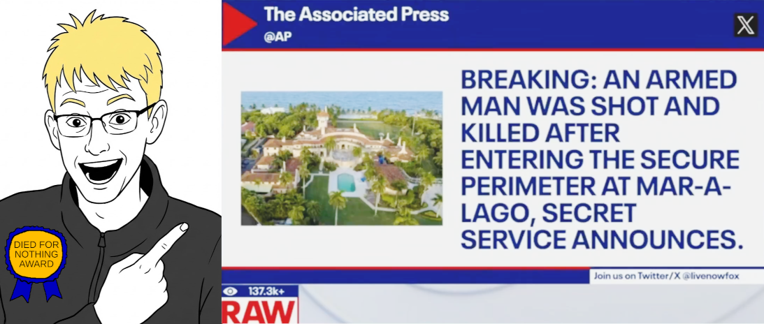 >>529017777Checked>>529017898Another retard trying to break into maralago with a shotgun got domed by secret service in Palm Beach.