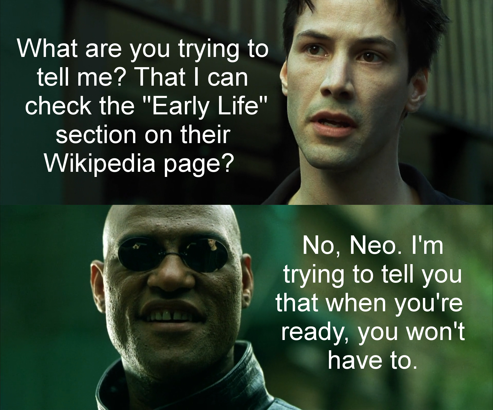 >>529048613There would be gang fights at my school, kids would bring in knives and guns, and when i told my dad about it, or how about i got in a fight with a kid because i wore a red t shirt, and he was a crip, and took offense to it, my dad would just look at me confused. They really think we're still living in leave it to beaver.