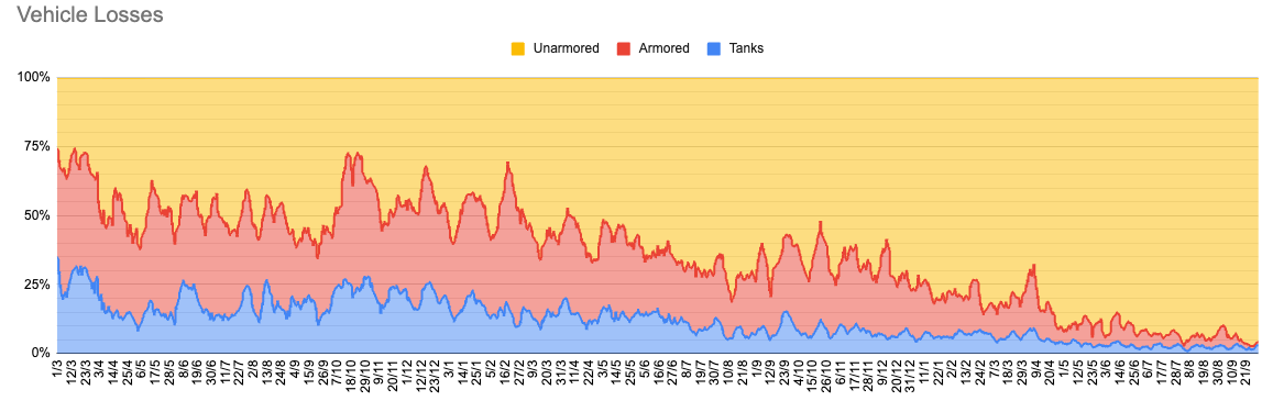 Ukraine has avoided costly engagements since 2023. They started with a much, much smaller population than Russia, even with a full mobilization if they sustained those kinds of casualties (the ones in 2023) continuously for the last 3 years, they would have simply run out of fighting men by now.