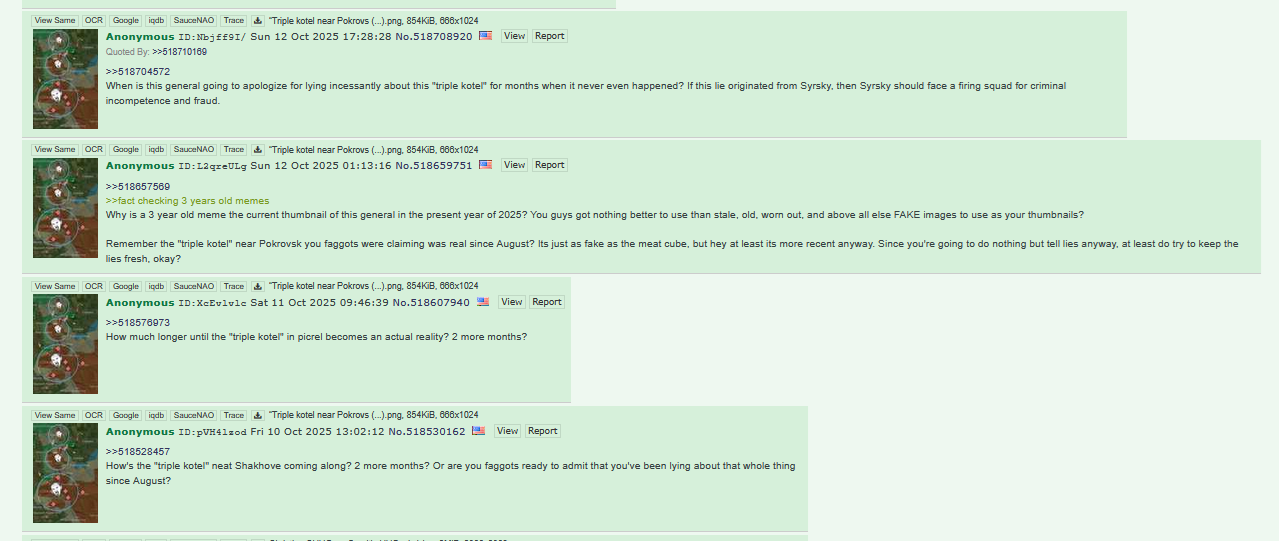 >>529090930so it appears all that feasting you did this past week, thinking ukraine was achieving TEMPO, was just ukraine rushing head first into another encirclement.