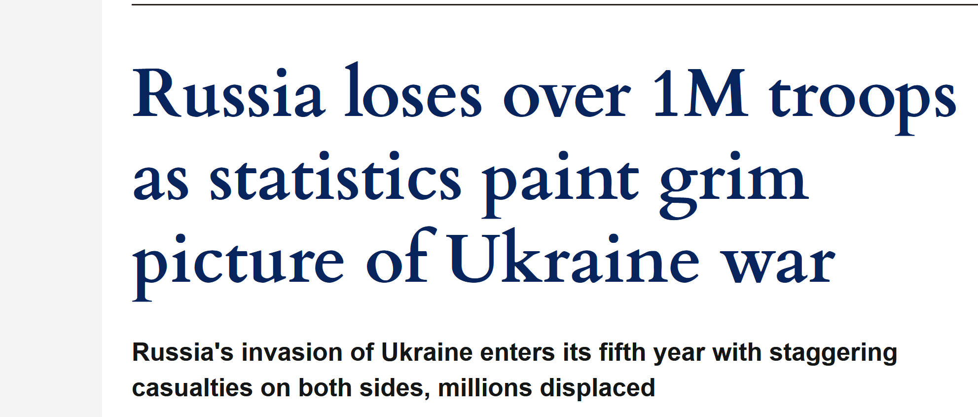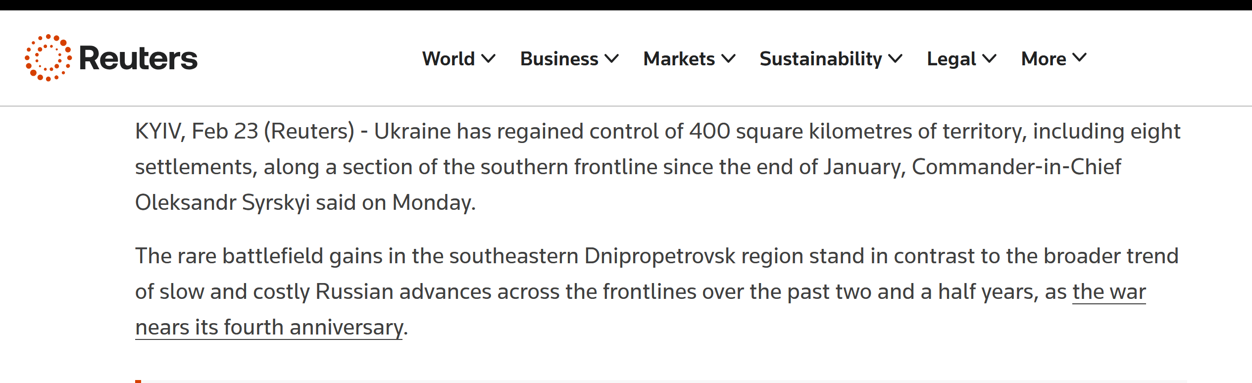 >>529089157Russian forces have made slow, marginal advances in eastern areas like Donetsk (e.g., near Slovyansk and Pokrovsk), gaining roughly a few hundred square kilometers over months at enormous cost—often 70-100+ meters per day in key offensives, with total 2025 gains around 4,700 sq km according to ISW and BBC analyses. However, Ukraine has conducted successful local counterattacks, notably recapturing over 200 sq km in southern Ukraine (e.g., near Novopavlivka, Verbove, and Hulyaipole directions) in recent weeks, including 201 sq km in just five days in mid-February—the fastest gains in 2.5 years—partly due to disruptions like Starlink restrictions on Russian forces. Manpower-wise, both sides suffer heavily in this attrition war, but estimates (e.g., CSIS, Western intel) put Russian casualties at ~1.2 million total (up to 325,000 killed) versus Ukraine's lower but still severe range (~500-600k total, ~100-140k killed per some reports), with Russia losing equipment at higher ratios (Oryx visuals show Russia at ~24,000+ pieces lost vs. Ukraine's ~11,000+). Ukraine isn't "winning" territorially overall—Russia holds ~20% of land—but it holds defensive lines, inflicts disproportionate costs, innovates with drones/tech, and prevents collapse despite aid cuts and winter strikes, making Russian "victory" far from assured or cheap.