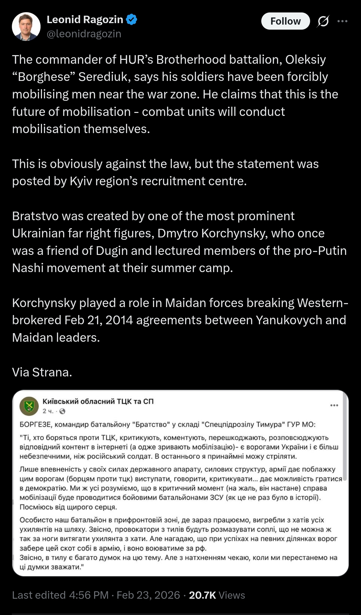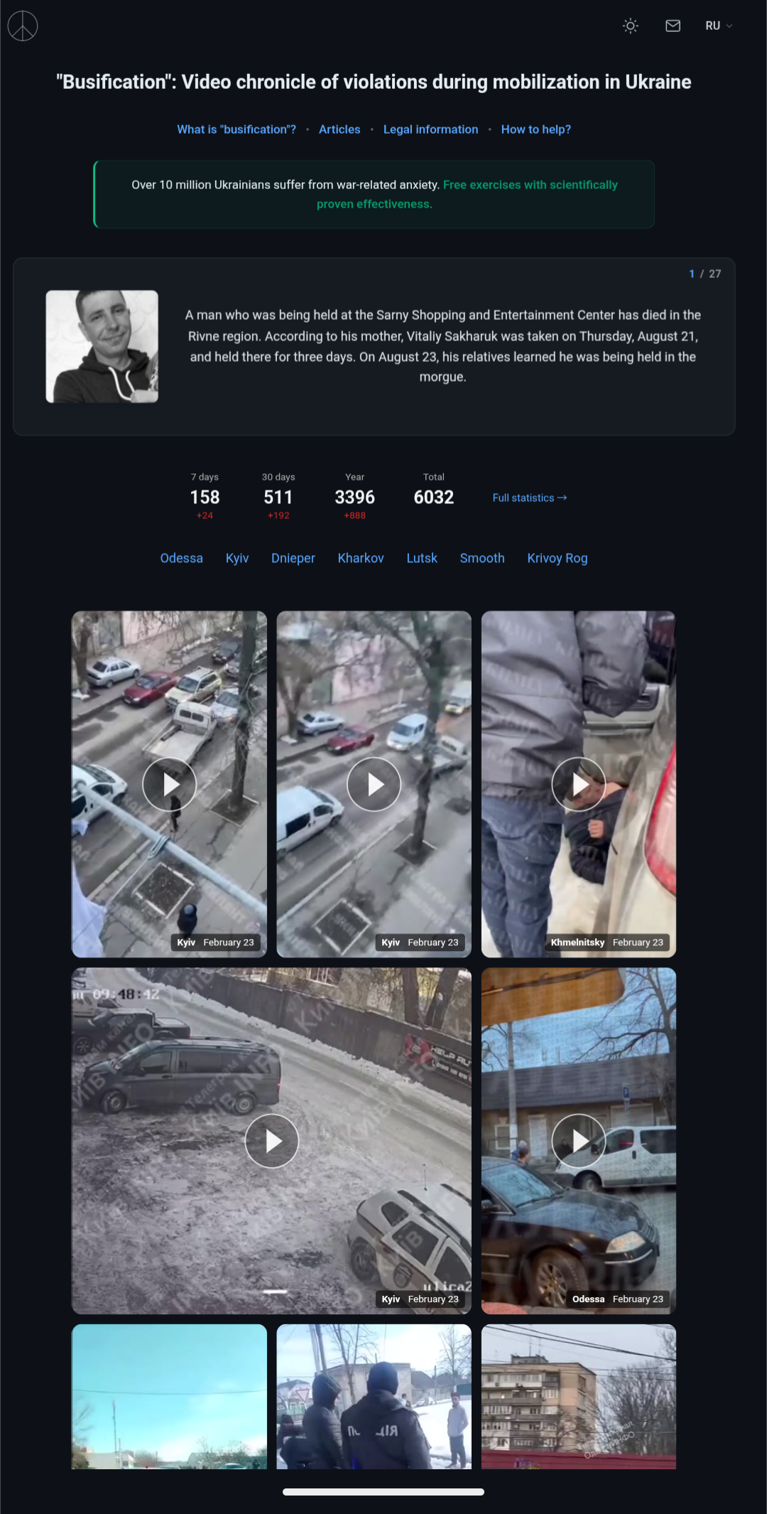 Here's a catalog of 6,000 videos of ukrainians being busified https://busification.org/